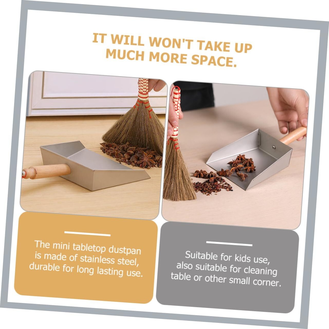 小さなほうきとちりとりセット - 小さなちりとり、ステンレススチール製ショートハンドルちりとり、デスククリーニングツール、ごっこ遊び、ドールハウス用写真小道具、ミニシーンアクセサリー、シンプルなデザインですが、非常に実用的で、優れた使用体験を提供します。