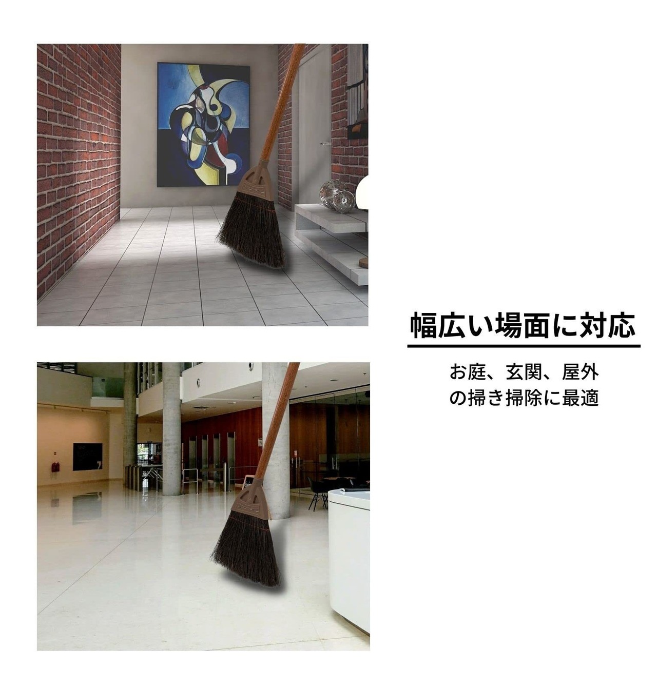 【特徴】穂はしなやかな黒シダを使用し、屋外の細かいチリゴミの掃除に適しています。木柄仕様の高級ホーキです。
