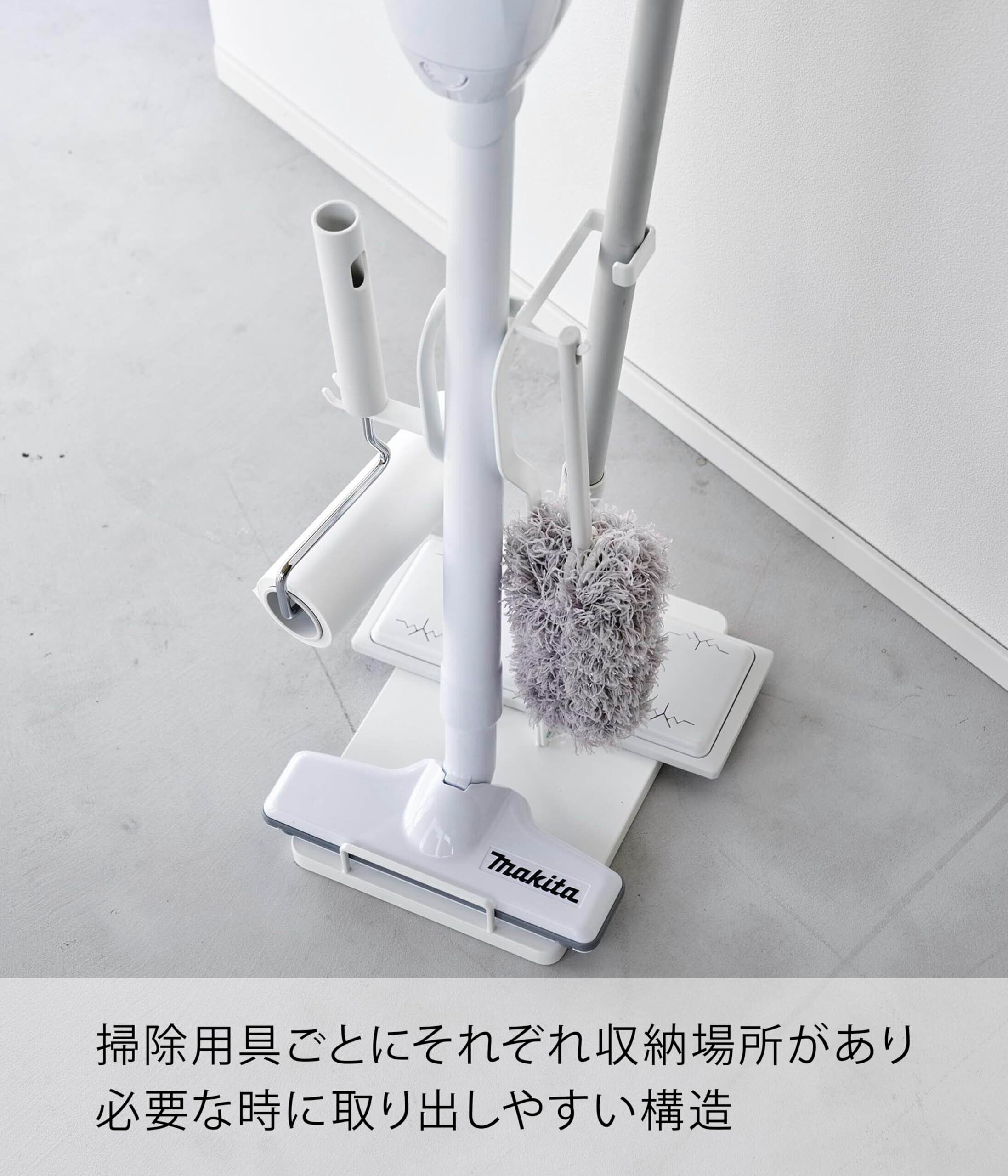 【特別価格】山崎実業(Yamazaki) クリーナーツールステーション ホワイト 約W18×D27×H41cm プレート Plate スティッククリーナー スタンド 掃除用具 一括収納 3650