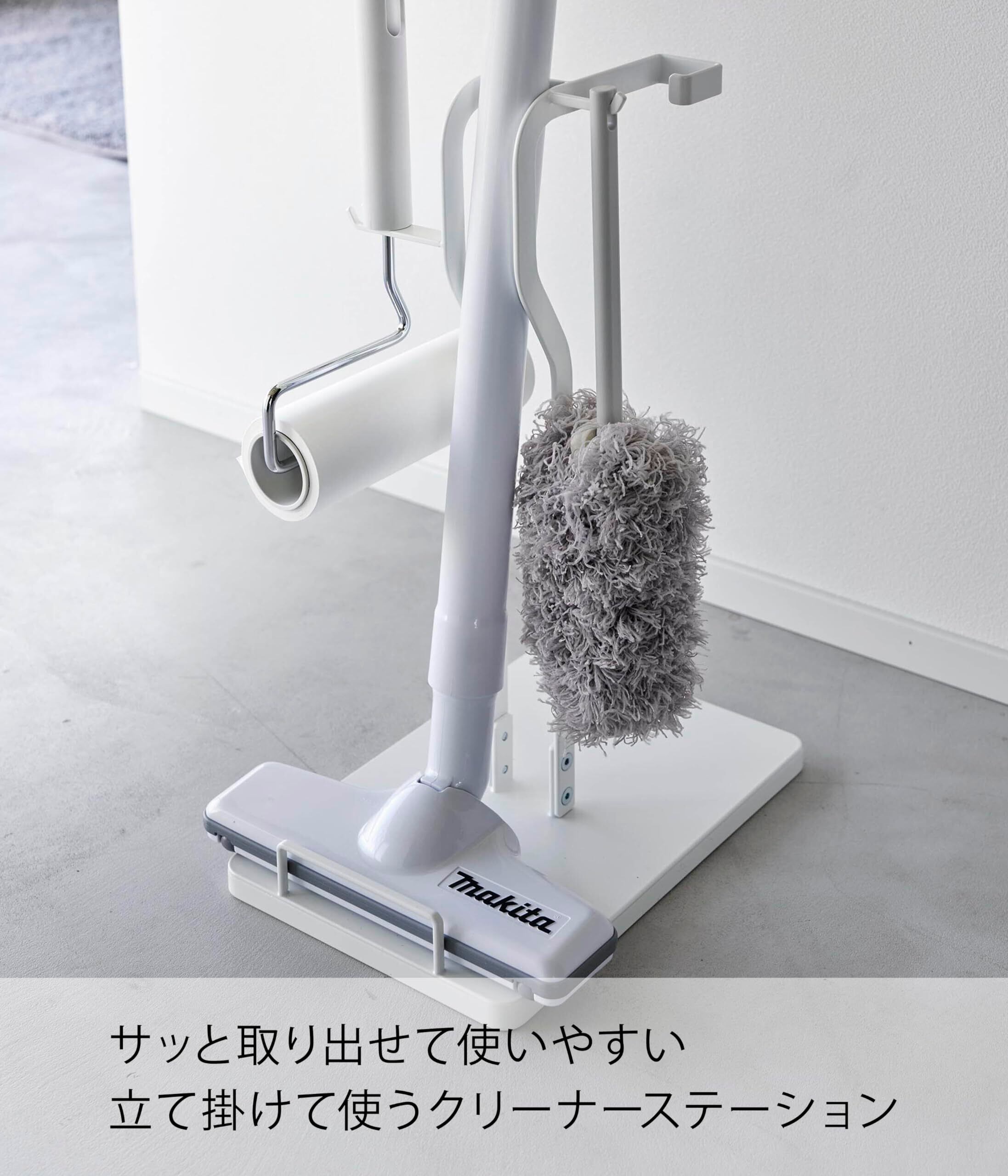 山崎実業(Yamazaki) クリーナーツールステーション ホワイト 約W18×D27×H41cm プレート Plate スティッククリーナー スタンド 掃除用具 一括収納 3650