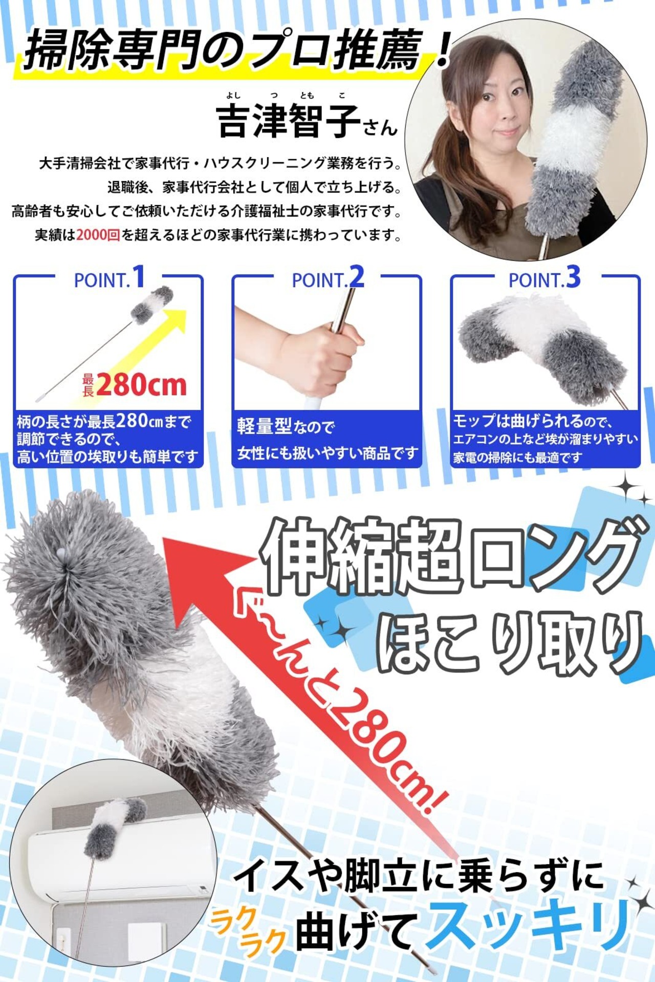 【限定セール】ほこりとり ハンディモップ 【お掃除のプロ推薦】 最長280㎝ はたき ホコリ取りブラシ ホコリ取り ブラインド掃除 伸縮 JOIEM (灰白)