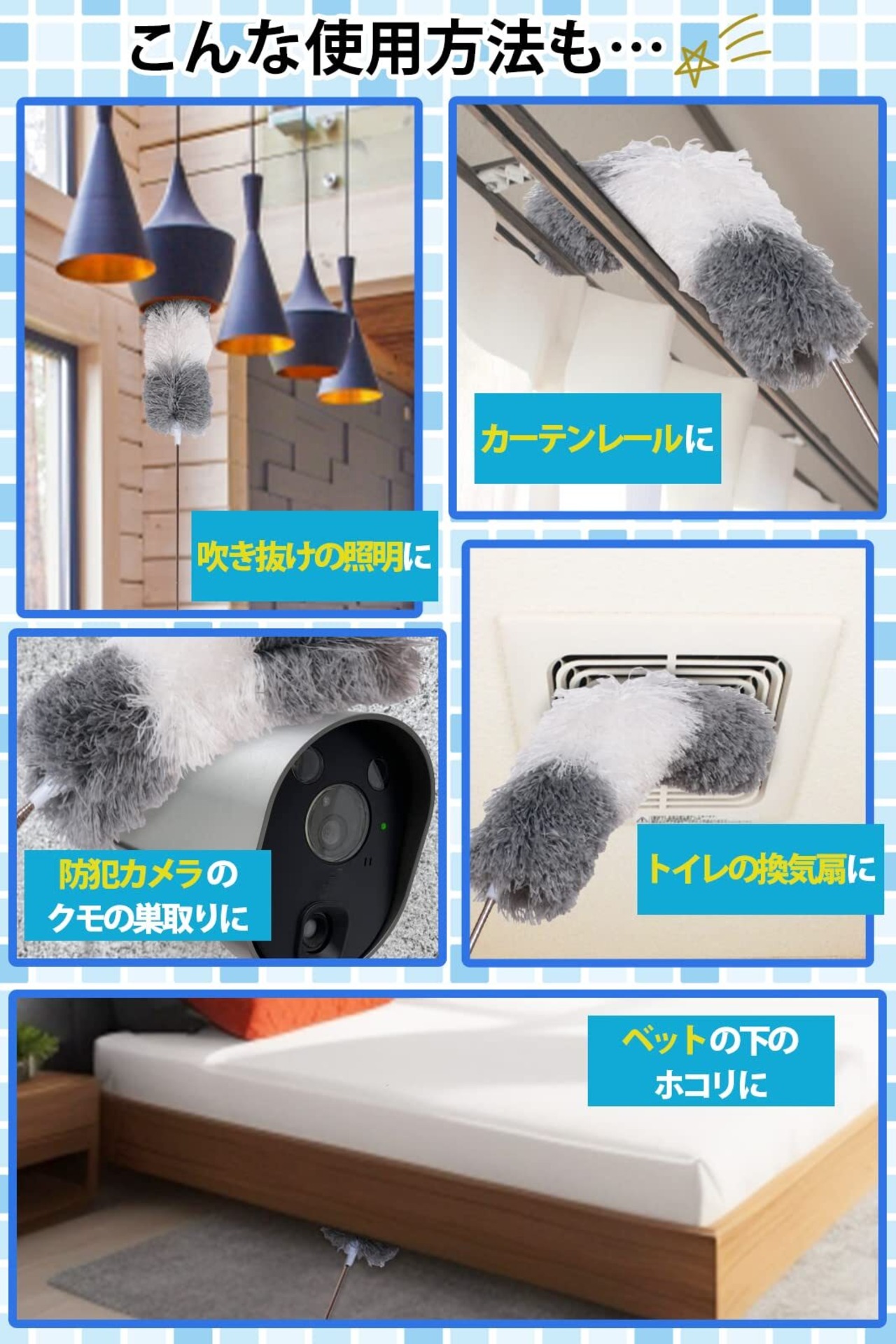 ■自宅・屋外・オフィス・車のお掃除に 家具・家電の隙間や上部・天井・カーテンレール・照明・駐車場・防犯カメラ・オフィスのロビー・デスク・PC裏・車内などの清掃に。