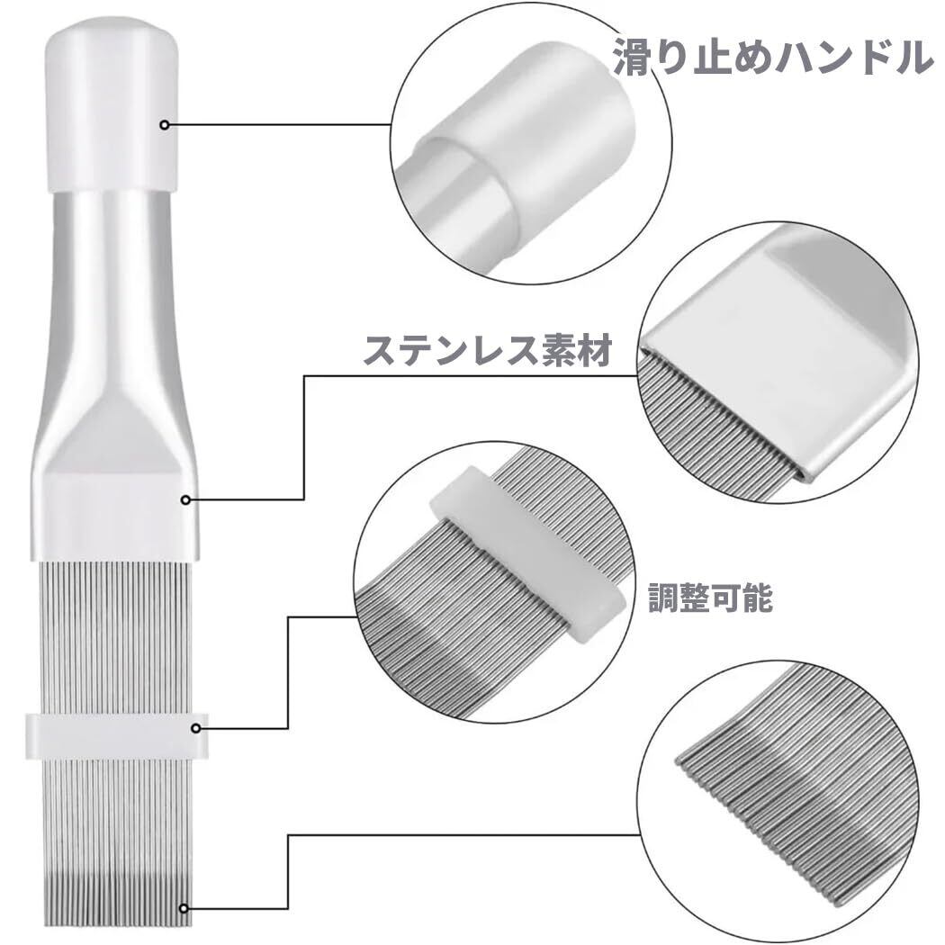フィンコームは、コンデンサーのほこりをきれいにし、変形を抑えてコンデンサーを真っ直ぐにすることができます。
