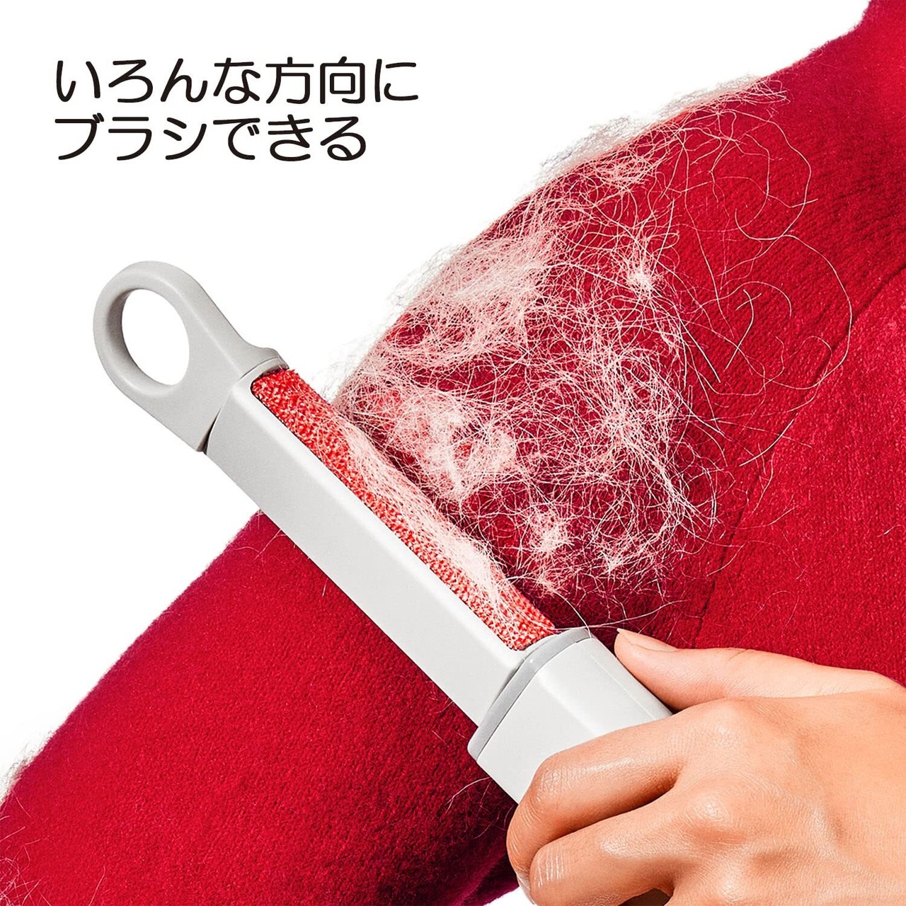 使い捨てのごみを出さず、繰り返し使えるコンパクトなクリーナーブラシです。洋服やカーペット、ソファーの毛や糸くず、ほこり取りに最適です。カバンの中や引き出しに入れても邪魔にならないコンパクトサイズで、手首をひねることなくすべらせるだけの人間工学に基づいたデザインです。底面のフタを開けてごみを捨てられるのが特長です。