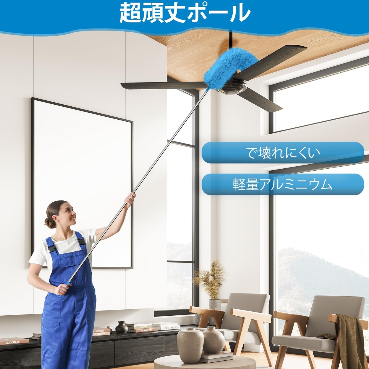 満足: ハンディモップは、ファン、照明器具、シーリングファン、リビングルーム、壁、ソファ、ブラインド、車、天井、狭いコーナーなど、あらゆる場所のクリーニングに最適です。