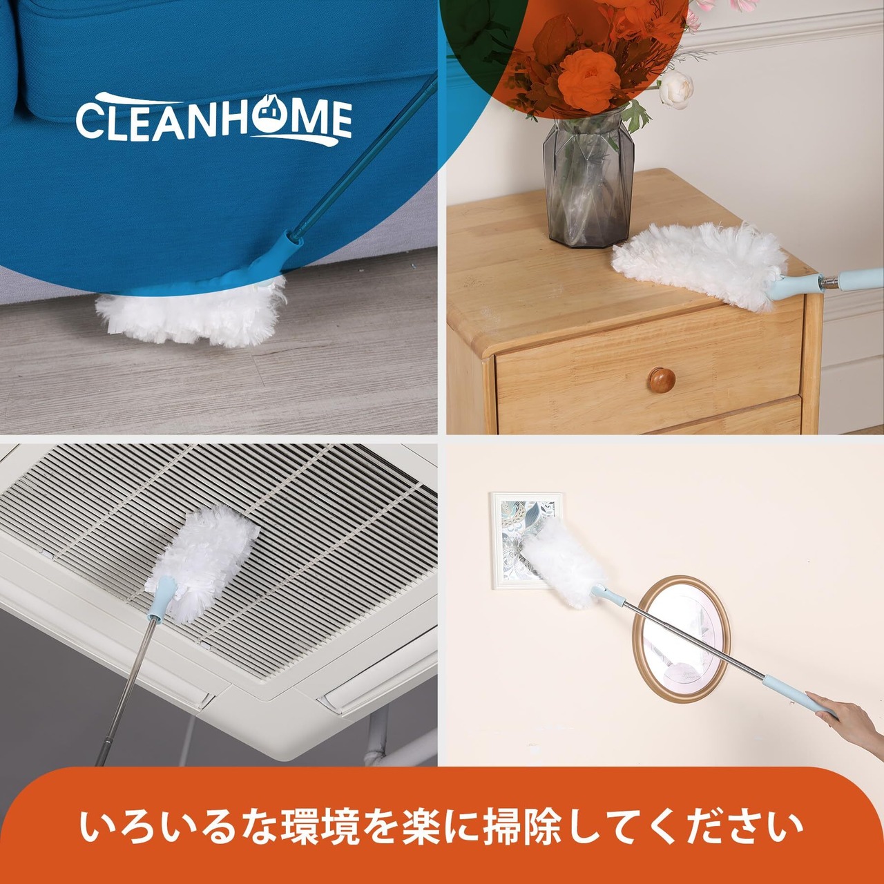 【2025最新】CLEANHOME ホコリ取り ほこりとり はたき ハンディモップ 59cm-190cm 伸縮可能 高い所掃除 天井 車 家 ブラインドに適用 使い捨て クロス12枚付き (ブルー)