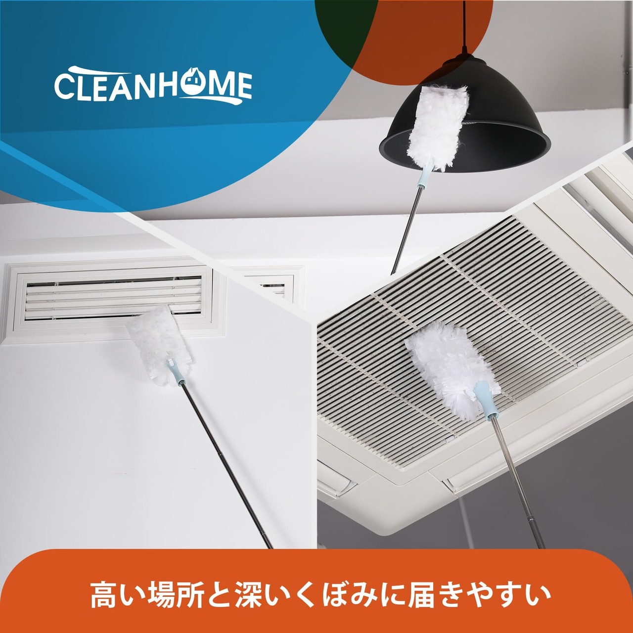 CLEANHOME ホコリ取り ほこりとり はたき ハンディモップ 59cm-190cm 伸縮可能 高い所掃除 天井 車 家 ブラインドに適用 使い捨て クロス12枚付き (ブルー)