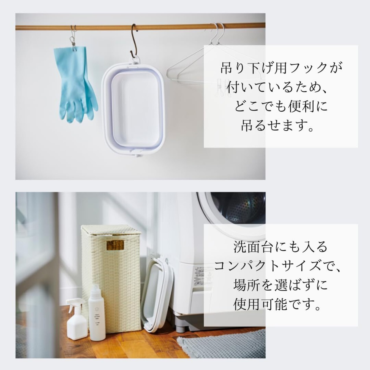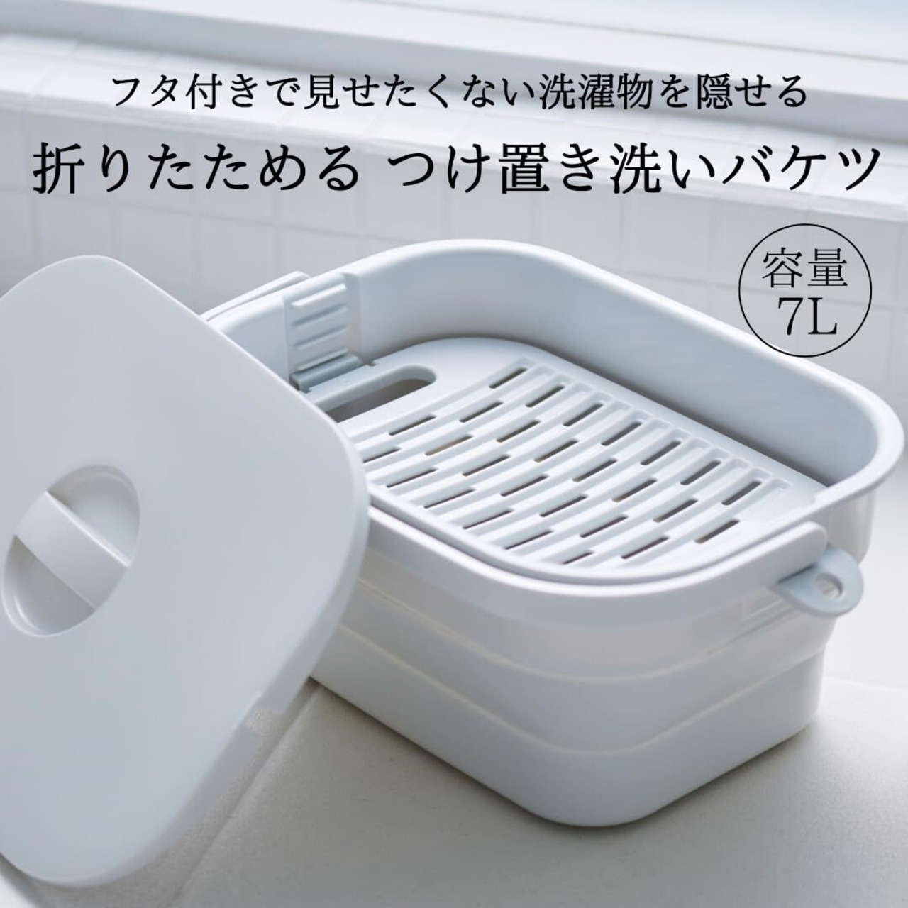 【新着商品】伊勢藤(ISETO) つけ置きバケツ 折りたためるつけ置き洗いバケツ ホワイト 7L 幅36.6×奥行24.6×高さ6.7~16cm 日本製 漂白剤対応 耐熱100℃ 洗濯板付 フタ付 吊り下げ用フック付 保温効果 上靴洗い 折りたたみ たたんでコンパクト I-617