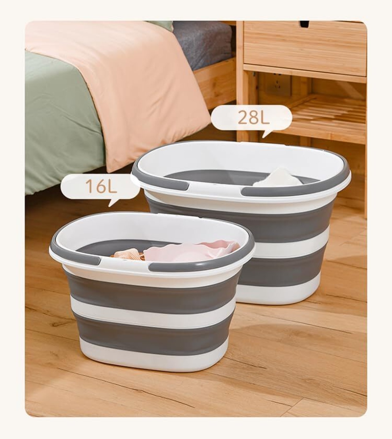 Gorocking 折りたたみ バケツ 16L/28L 大容量 おしゃれ キャンプ 洗濯 洗車 足湯 釣り (グレー, 16L)
