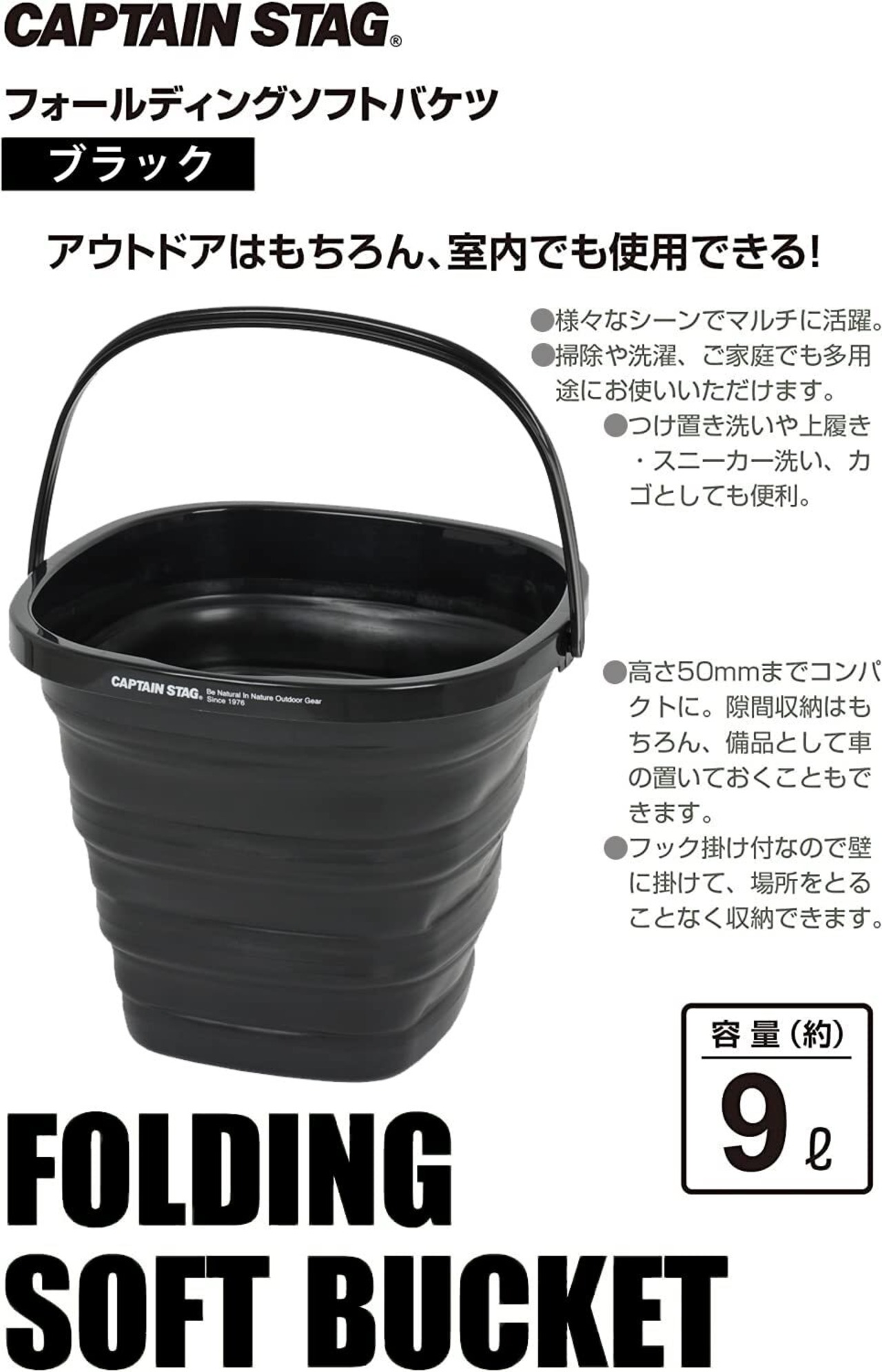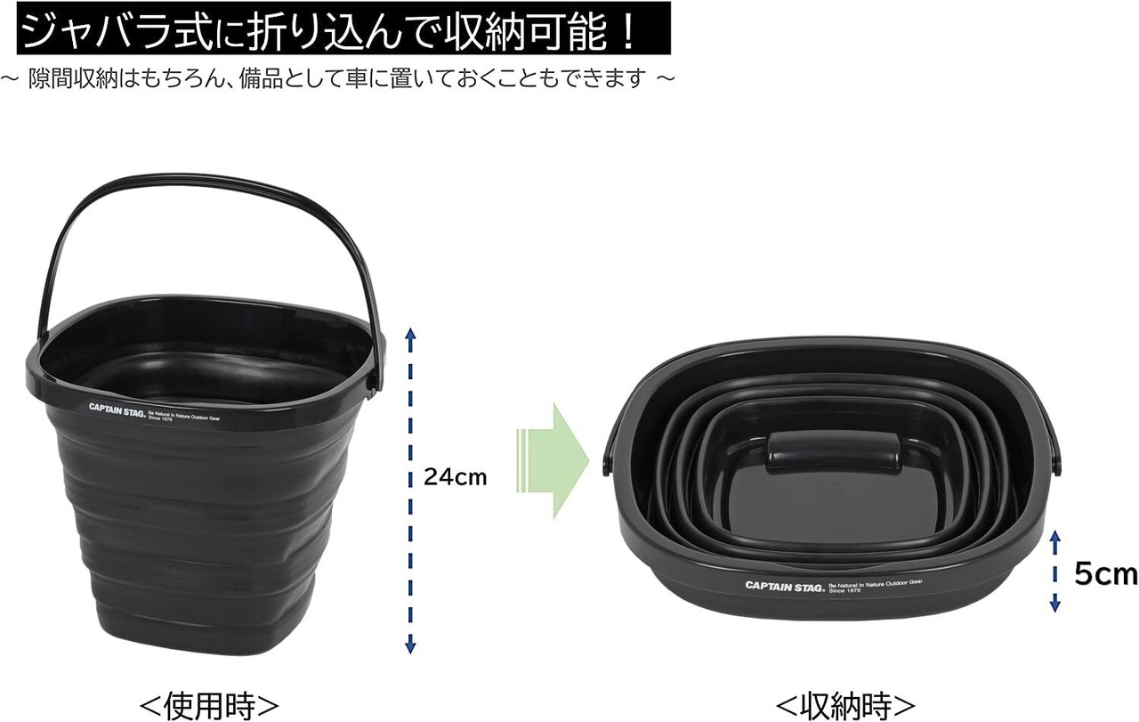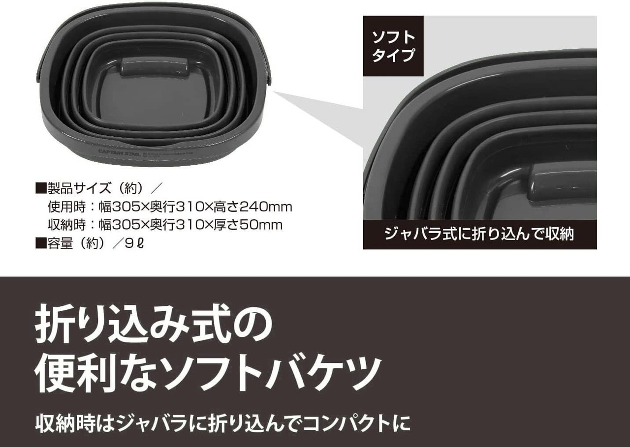 キャプテンスタッグ(CAPTAIN STAG) バケツ 折りたたみバケツ フォールディング ソフトバケツ 収納 コンパクト 【ブラック/オリーブ/カーキ】 UW-1532/UW-1533/UW-1534