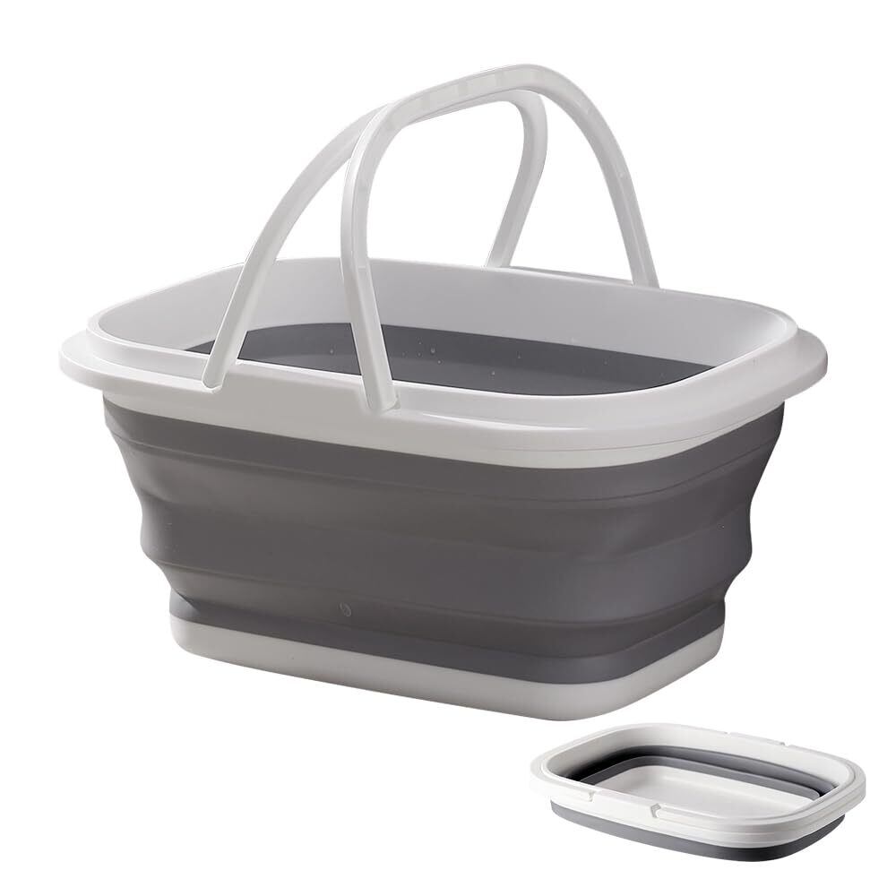 RULAYMAN 折りたたみ バケツ 洗い桶 昇級版 釣り用バケツ 洗濯かご 10L 大容量 生活用品 掃除 洗濯 アウトドア 車載バケツ 多機能 収納便利 長方形 (グレー)