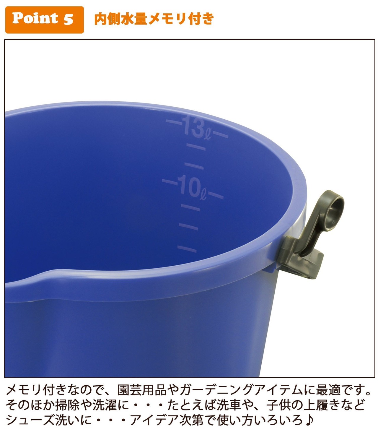 ●(1)持ち手のつけ根にホース抑えが付いているので、バケツに水をためる時にとっても便利
