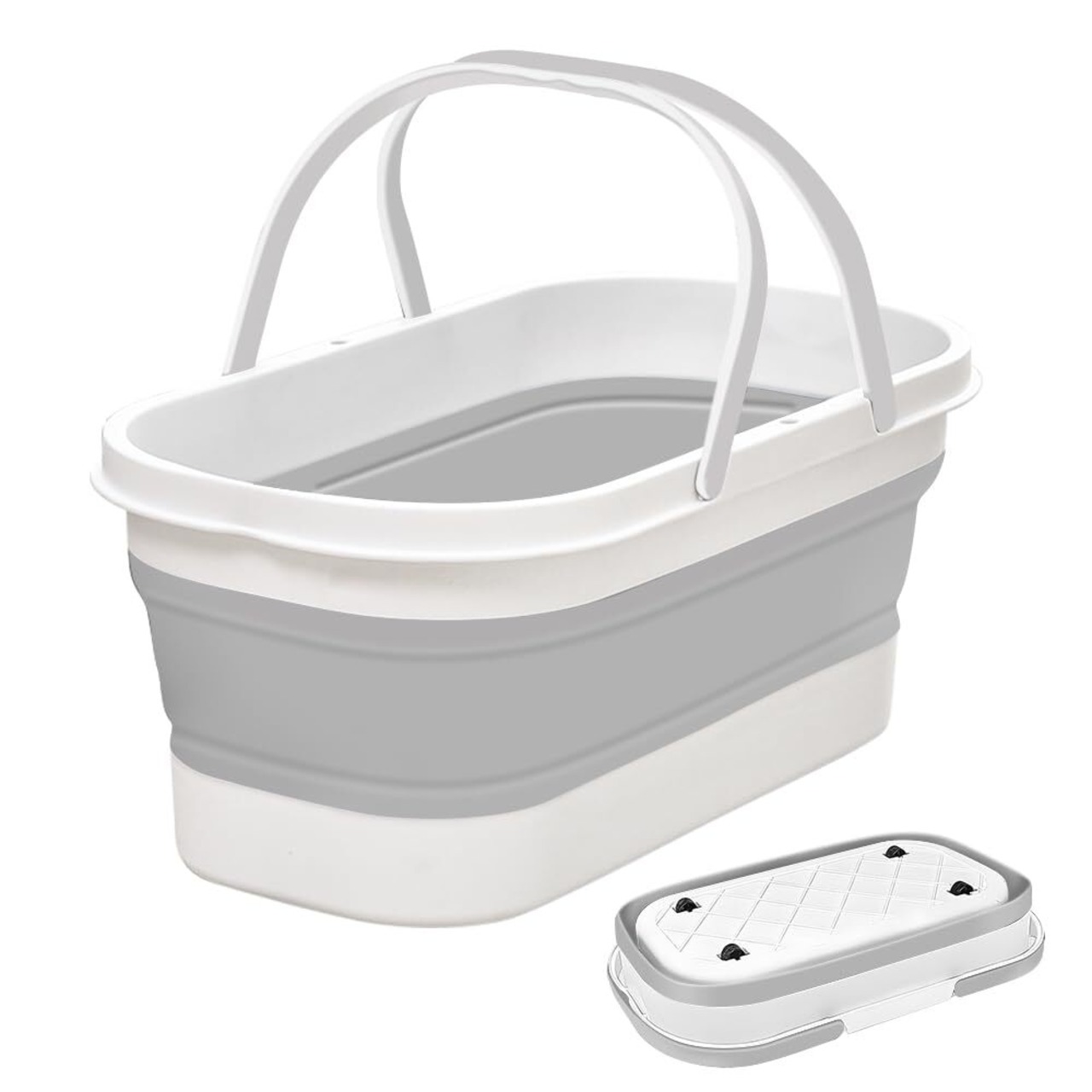 【数量限定】RULAYMAN 折りたたみ バケツ モップバケツ 洗い桶 12/15L 大容量 ホイール 取っ手付き 生活用品 掃除 洗濯 アウトドア 車載バケツ 多機能 収納便利 (12L、ライトグレー)