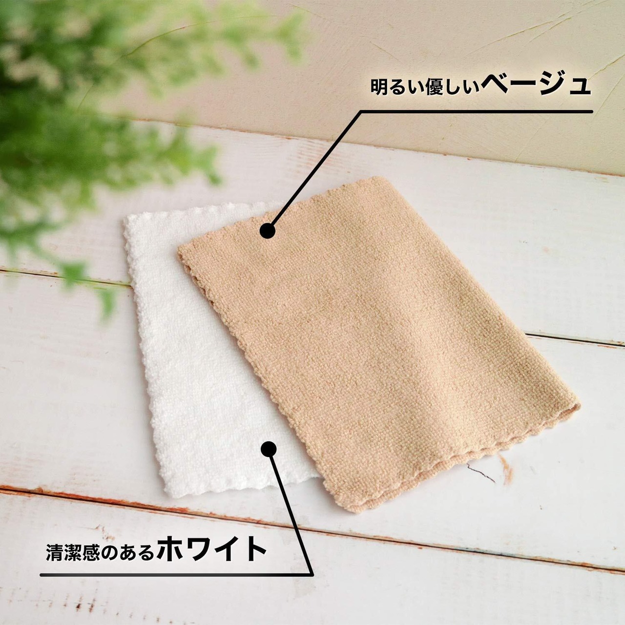 ●リビングに置きっぱなしでもインテリアに馴染むベージュ。ふきんとしても使える清潔感のあるホワイト。それぞれ10枚ずつ入っています。