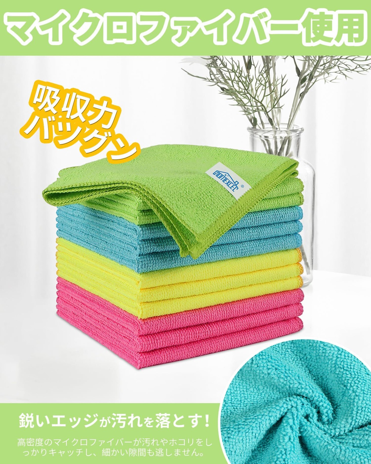 【限定セール】HOMEXCEL マイクロファイバークロス タオル 12枚入 (キッチンクロス/洗車タオル/台拭き) ふきん ぞうきん, 約29.21×29.21cm (マルチカラー)