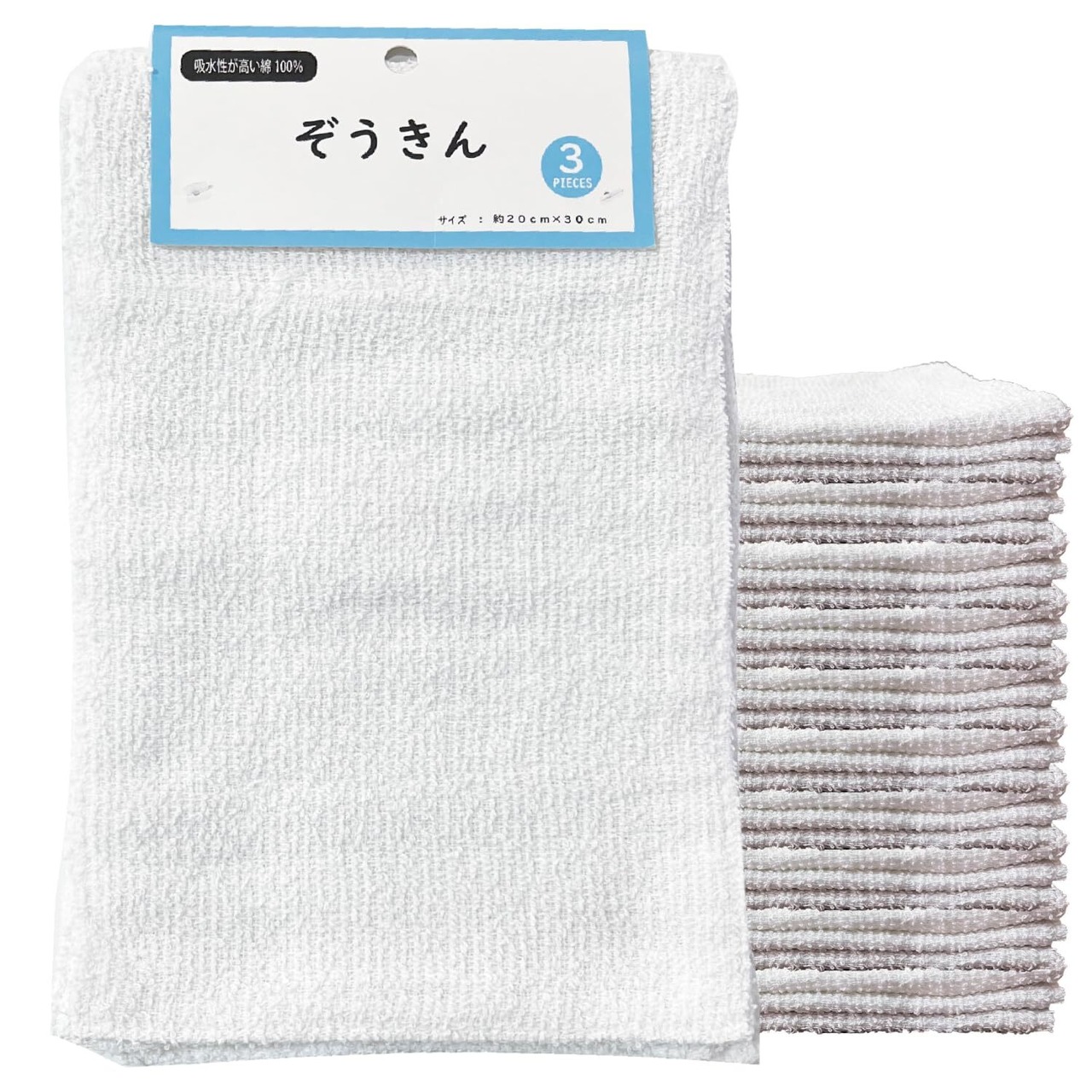 【特別価格】ユノックス ぞうきん 白 30枚セット(3枚×10個) 約20×30cm 綿100% 雑巾 掃除用品 掃除 学校 家庭 洗車 掃除 水拭き 乾拭き まとめ買い 業務用にも
