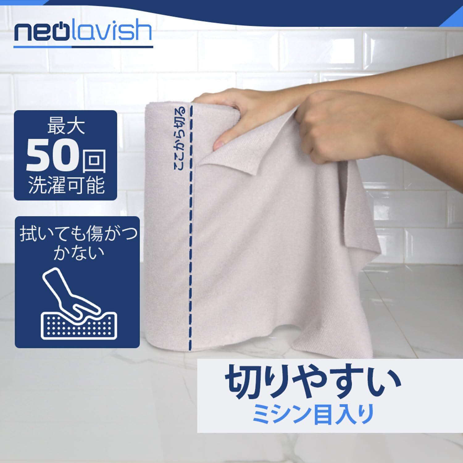 【特価セール】NeoLavish® Roll 50回 洗って繰り返し使える 切り取り可能 マイクロファイバー ロールクロス|キッチンペーパー・ペーパータオル代用に【グレー 25シート 30×30cm】