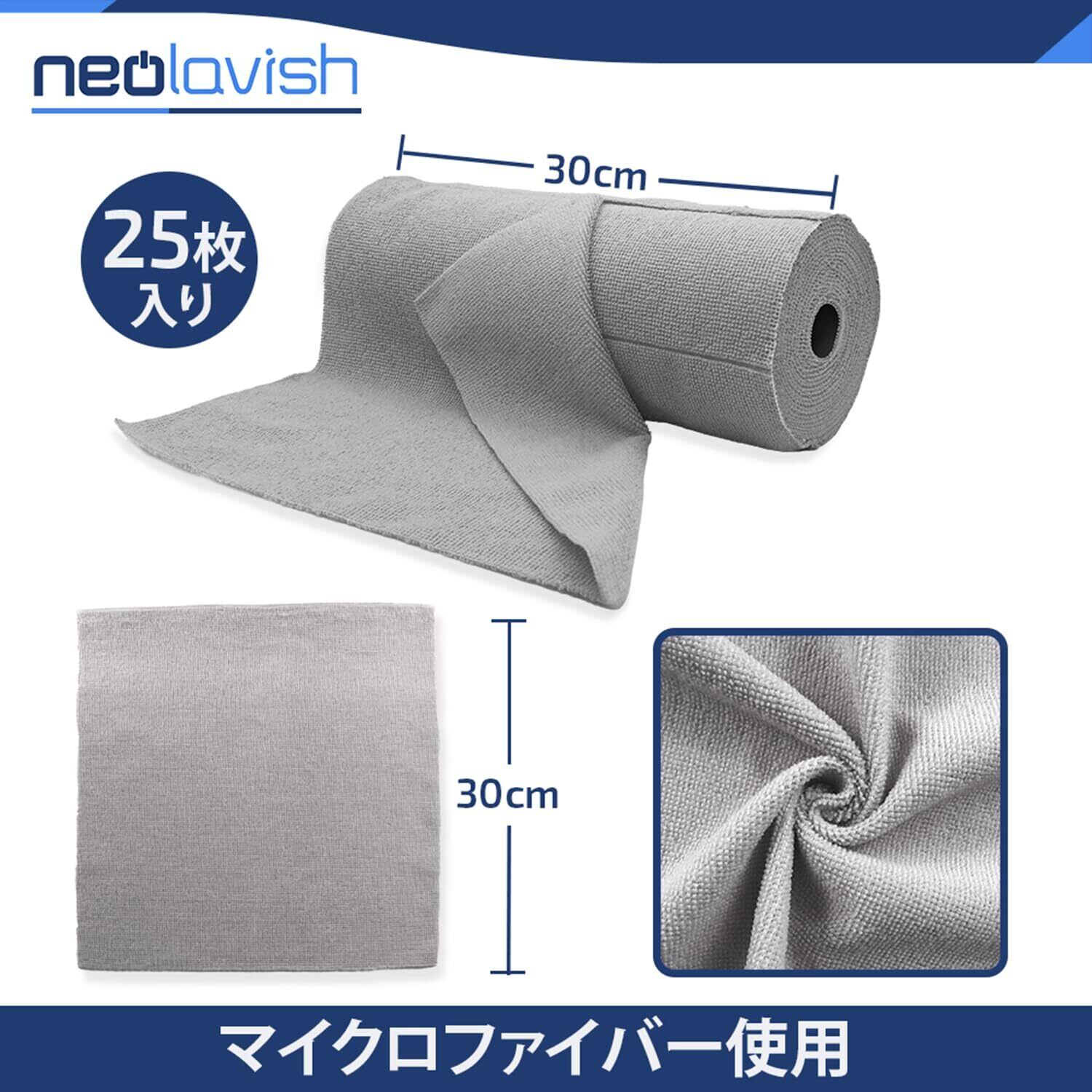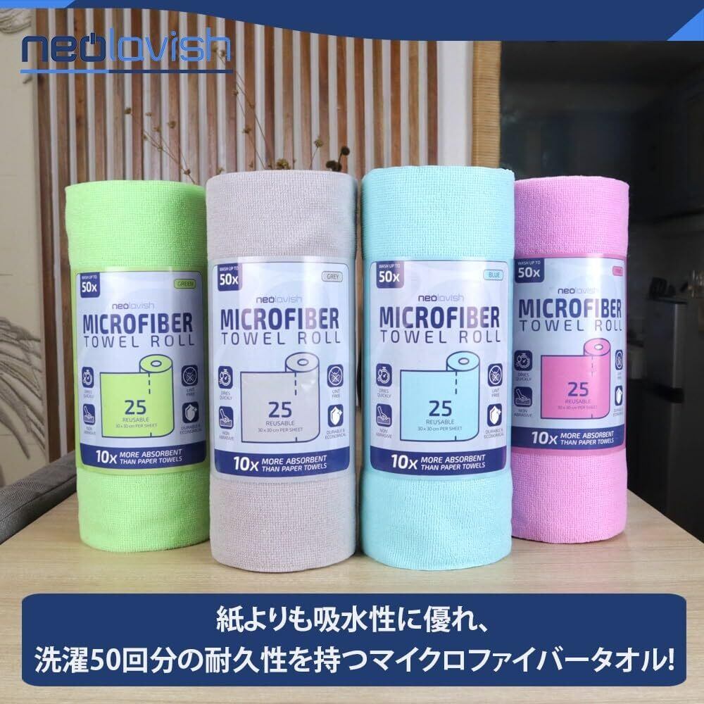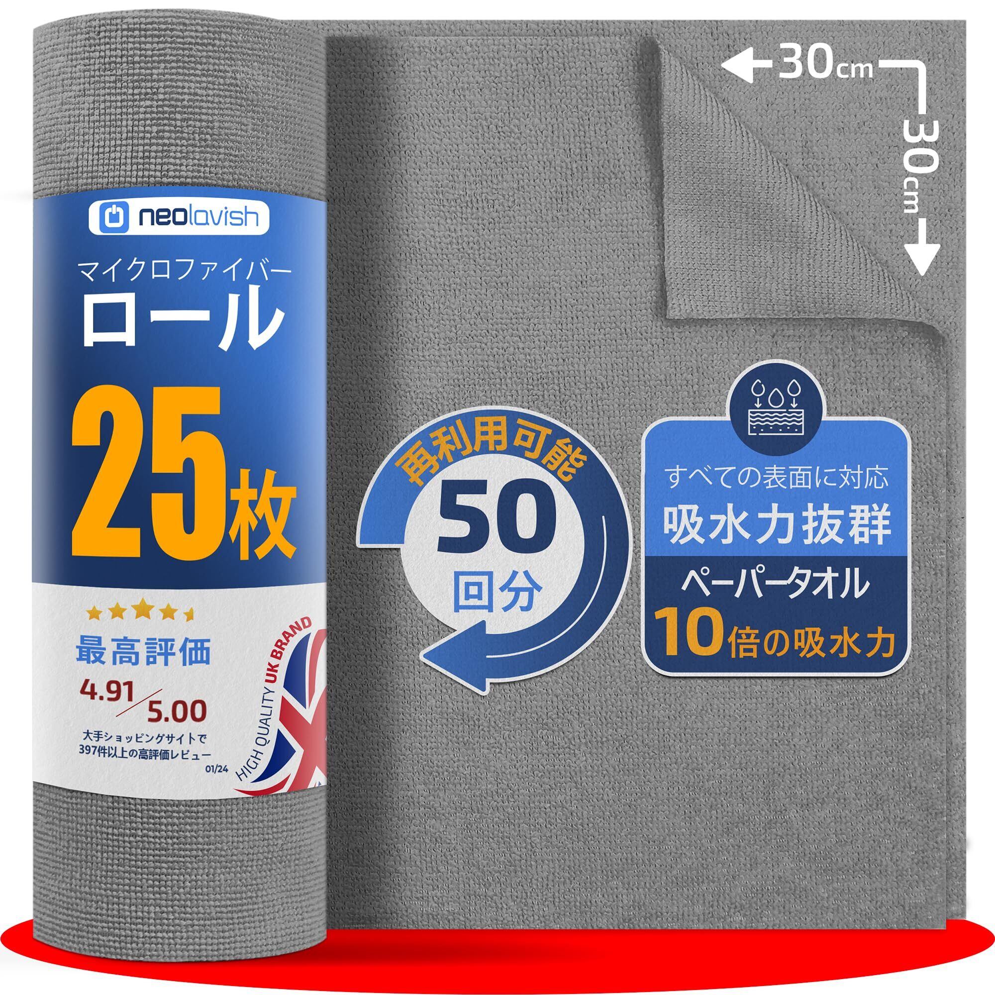 NeoLavish® Roll 50回 洗って繰り返し使える 切り取り可能 マイクロファイバー ロールクロス|キッチンペーパー・ペーパータオル代用に【グレー 25シート 30×30cm】