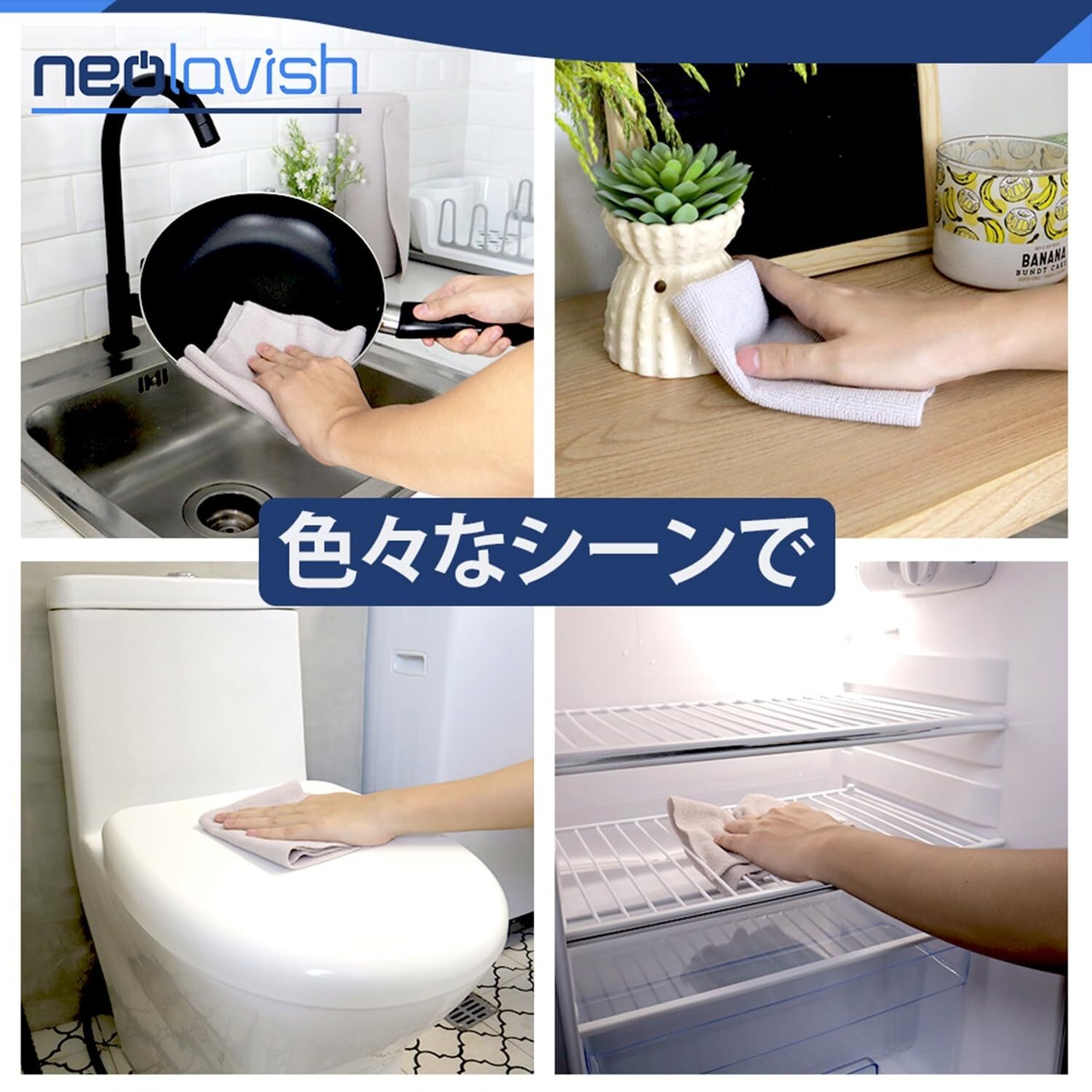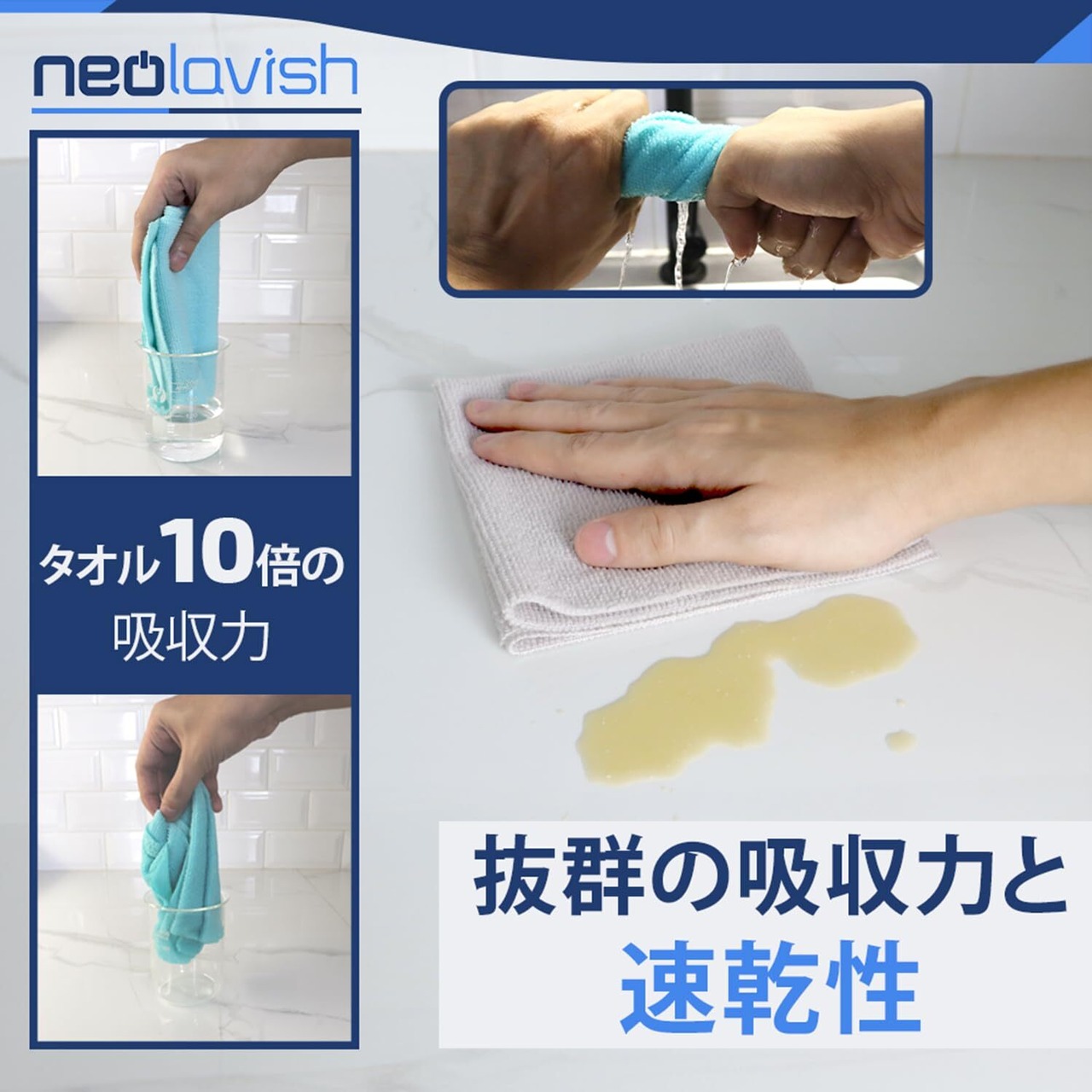 10倍の吸水力で油汚れもスッキリ拭き取り: 高密度マイクロファイバーが一般的なタオルの約10倍の吸水力を発揮。水や油も素早く拭き取り、キッチンカウンターやコンロ周りの掃除、食器拭きにも最適です。