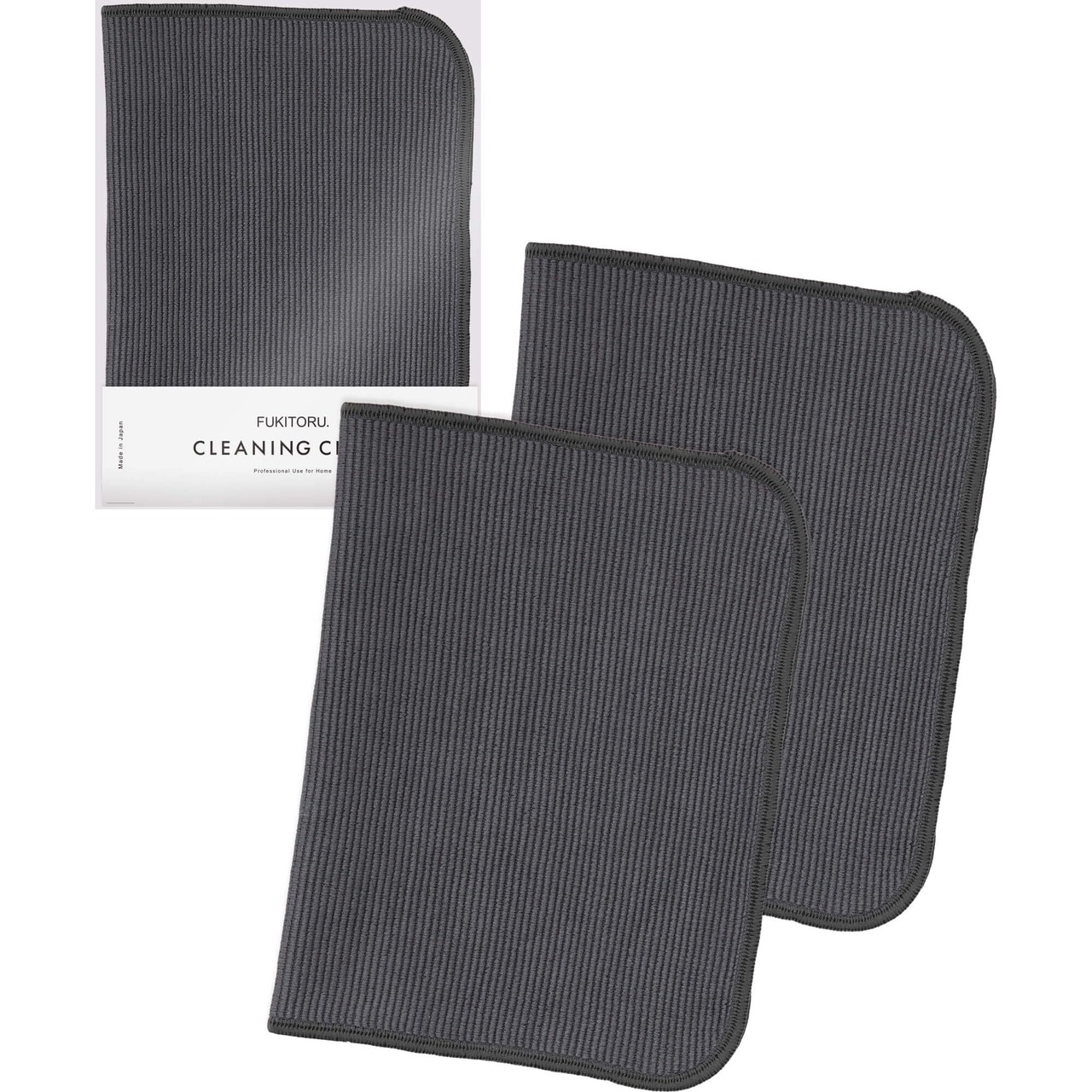 FUKITORU. ふきん クリーニングクロス キレイに拭き取る キッチンタオル 2枚セット 30x20cm 日本製 プロ仕様 [拭きあとを残さず汚れをしっかり拭き取る] 油汚れクロス マイクロファイバー キッチン お掃除 布巾 台拭き マルチクロス ガラス 窓 洗面台 鏡 耐久 吸水 速乾 グレー