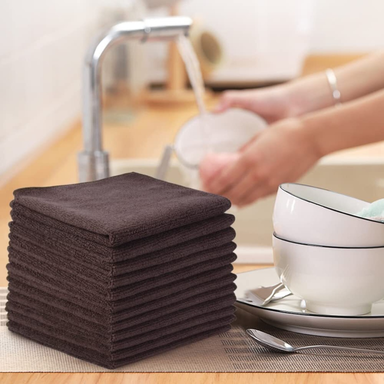 SINLAND マイクロファイバー クリーニングクロス 業務用タオル キッチン 掃除 洗車 吸水 速乾 クロス 12枚入 ブラウン