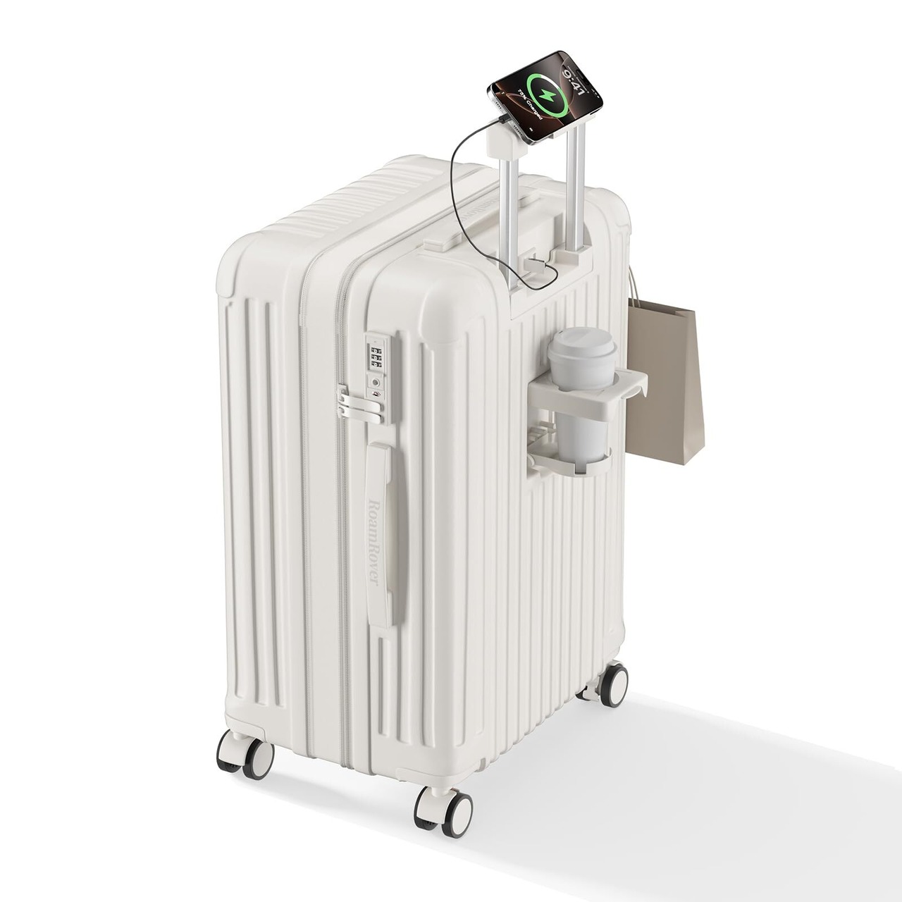 [SupTrip] スーツケース 機内持ち込み キャリーケース 拡張機能付き キャリーバッグ ストッパー付き カップホルダー付き USBポート付き 携帯スタンド TSAロック搭載 物掛けフック 大容量 超軽量 静音 ダブルキャスター おしゃれ 旅行 ビジネス 出張 修学 泊まる 入院 (ホワイト, S(1~3泊/40L/機内持込))