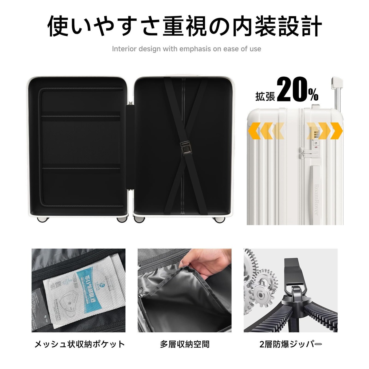 【拡張可能・にじゅう防盗ファスナー】このスーツケースは、革新的な拡張デザインを採用しており、軽く引っ張るだけで20%の容量を拡張できます。これにより、より多くの収納スペースを提供し、長旅やショッピング後の帰りに特に便利です。さらに、ダブルレイヤーの防犯ジッパーを装備しており、セキュリティが強化されるだけでなく、ジッパーが予期せず開くのを防ぎ、荷物の安全を確保します。ビジネス出張でもレジャートリップでも、このスーツケースはあなたのニーズを満たし、便利で安心な旅行体験を提供します。※注意:拡張後は機内に持ち込めません。