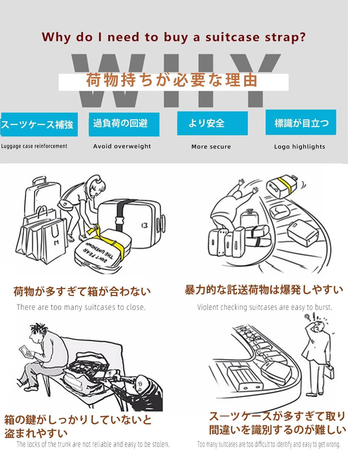 【サイズ調整可能】最大2メートルまで調整可能で、ほぼ市販のスーツケースがこれ一本で十分です。丈夫なナイロンを使用されており、長持ちします。