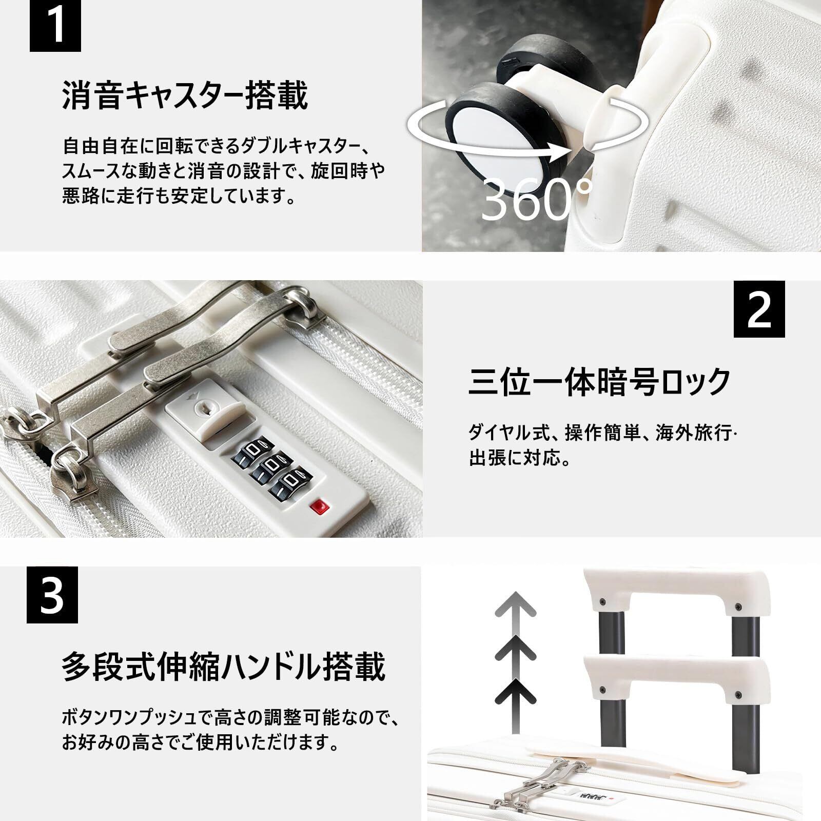 ◆【使い勝手の良い収納スペース】このスーツケースは、フロントオープン部とメイン部の二つの区域で構成されています。①フロントオープン部には、ジッパー付きメッシュポケットとPC用ポケットを備え、必要な物をすぐに取り出せます。②メイン部には、荷物の移動を防ぐX字ベルト固定スペース、ジッパー付きポケット、メッシュポケット、乾湿分離ポケットを装備。荷物の整理が簡単で、スーツケースを開かずに素早くアクセス可能。出張から旅行まで、あらゆるシーンに対応します。