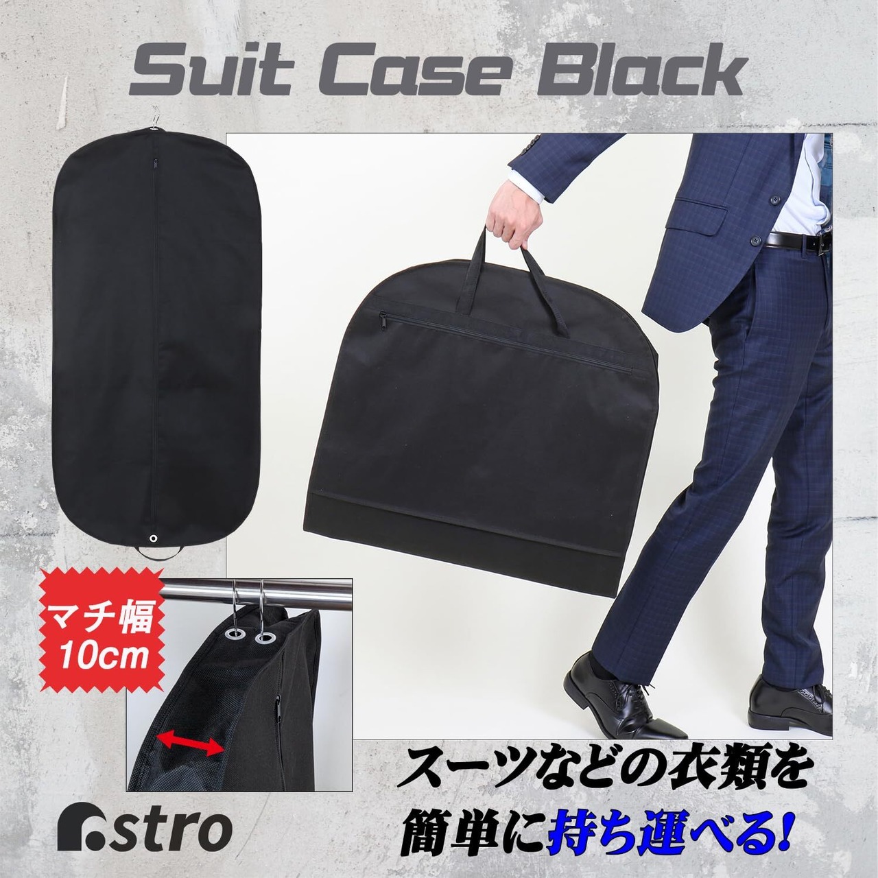 【特別価格】アストロ スーツカバー マチ付 黒 厚手不織布 ファスナー 小物ポケット付き 持ち手付き 605-30
