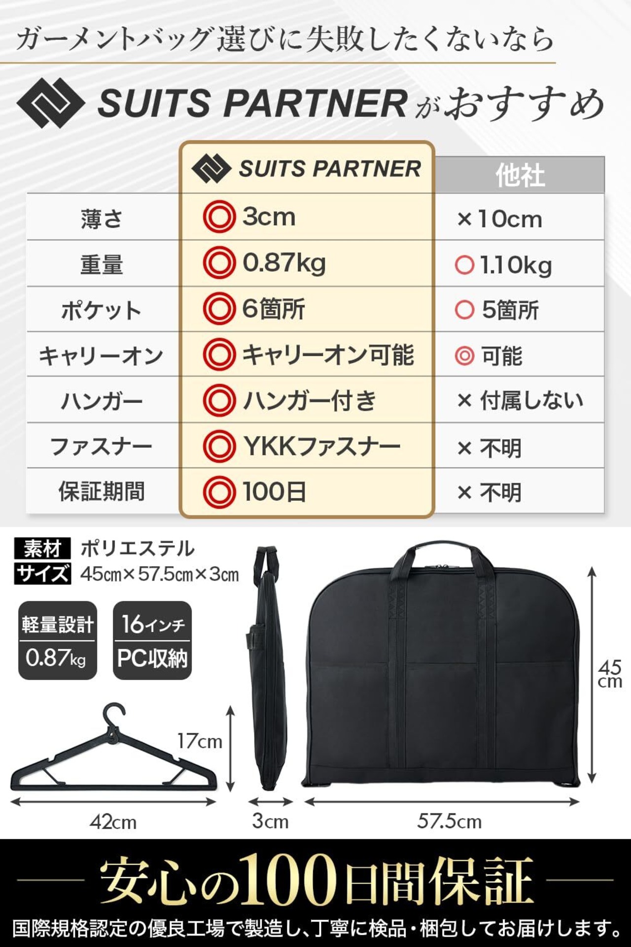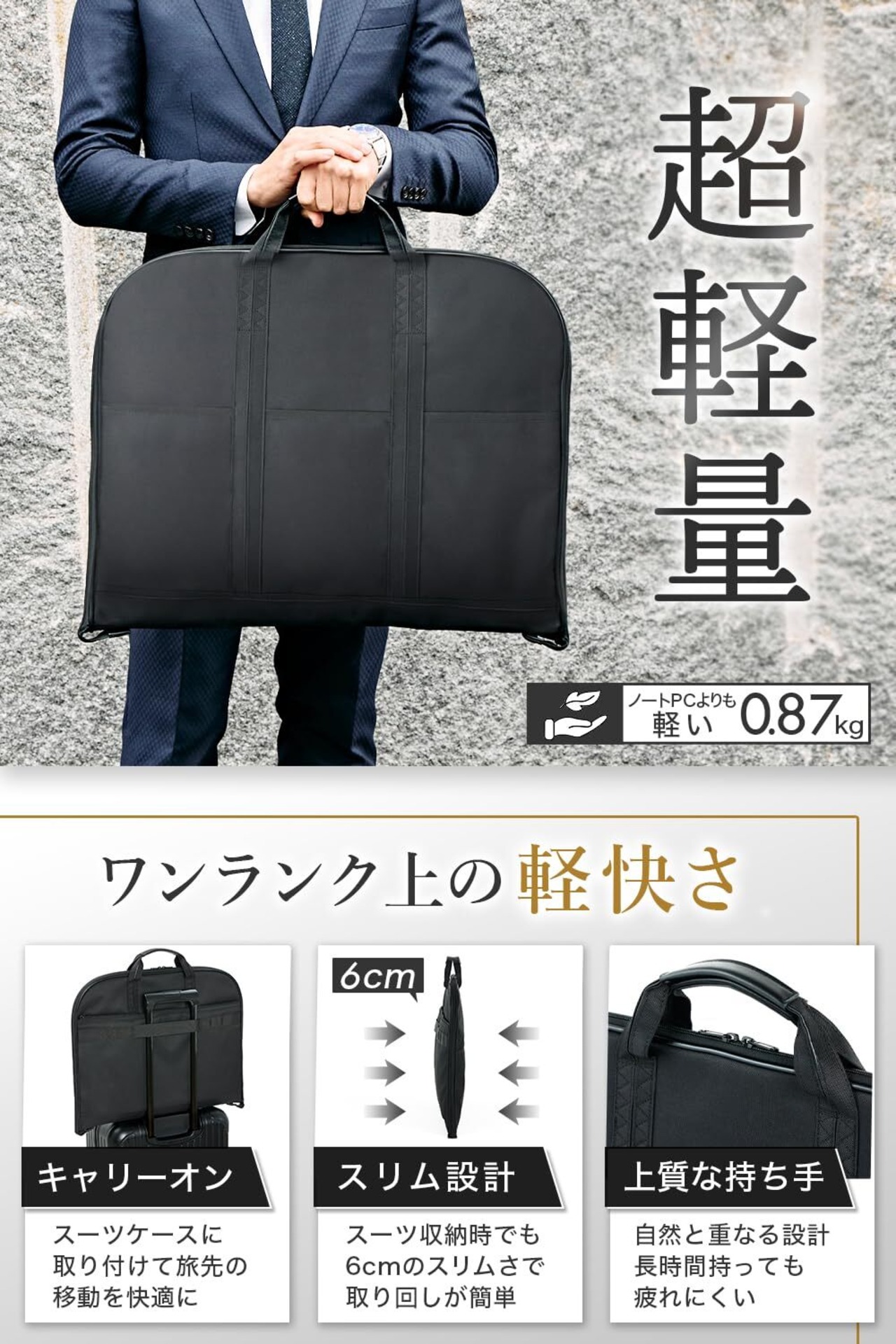 [SUITS PARTNER] ガーメントバッグ【南青山テーラー推奨品】 スーツを型崩れから守る スリム&軽量×多収納 メンズ ビジネス 出張 持ち運び