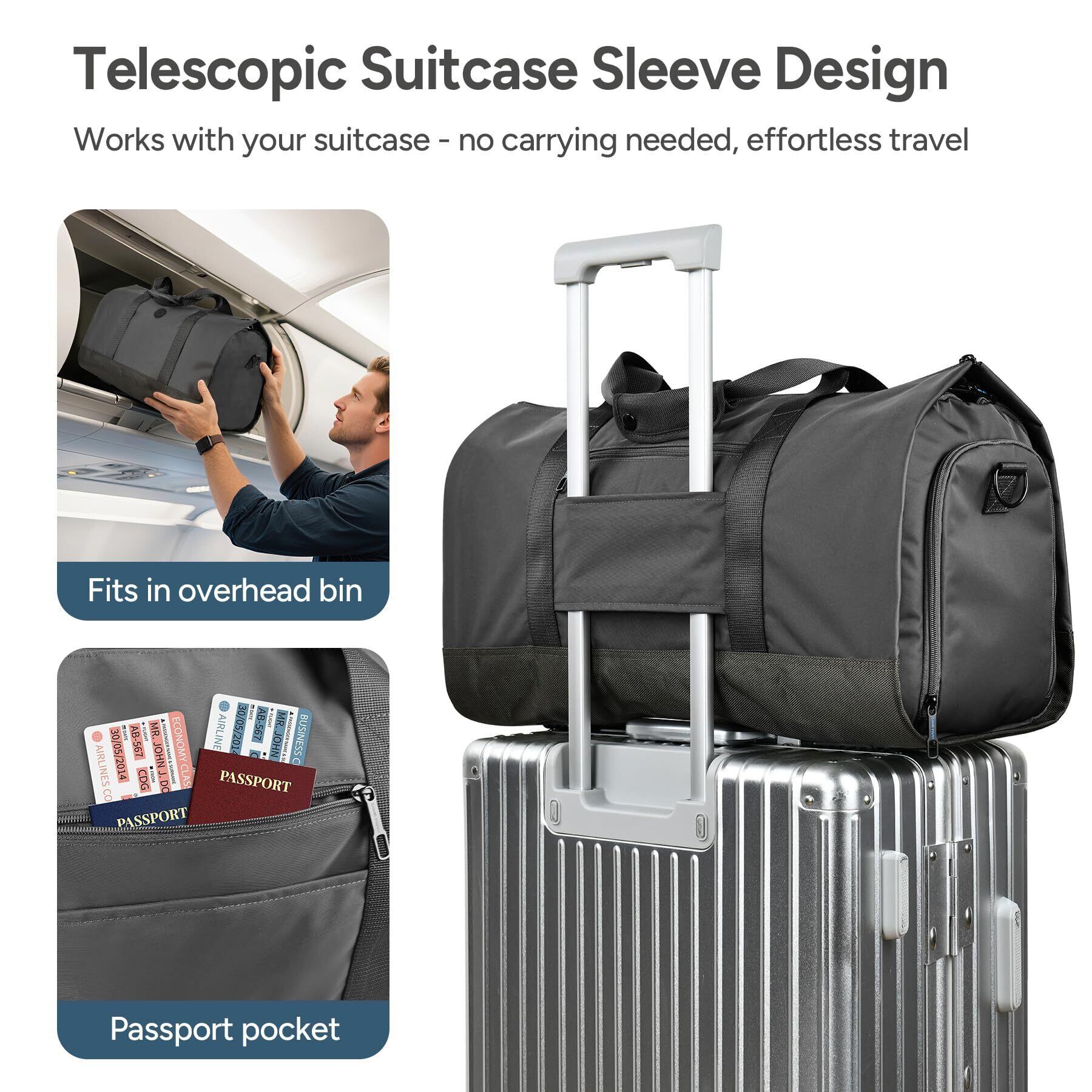 [travel inspira] ガーメントバッグ ビズネス 旅行用 乾湿分離 コンバーチブル衣類バッグ スーツ収納/靴収納ダッフル スーツカバー 型 くずれ防止 ボストンバッグ 防水 防塵ショルダーバッグ 出張 就活 スポーツ ジム グレー