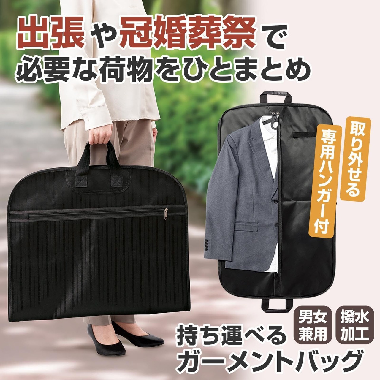 [コモライフ] 持ち運べる ガーメントバッグ スーツ カバー 男女兼用 撥水加工 ハンガー付 持ち運び 出張
