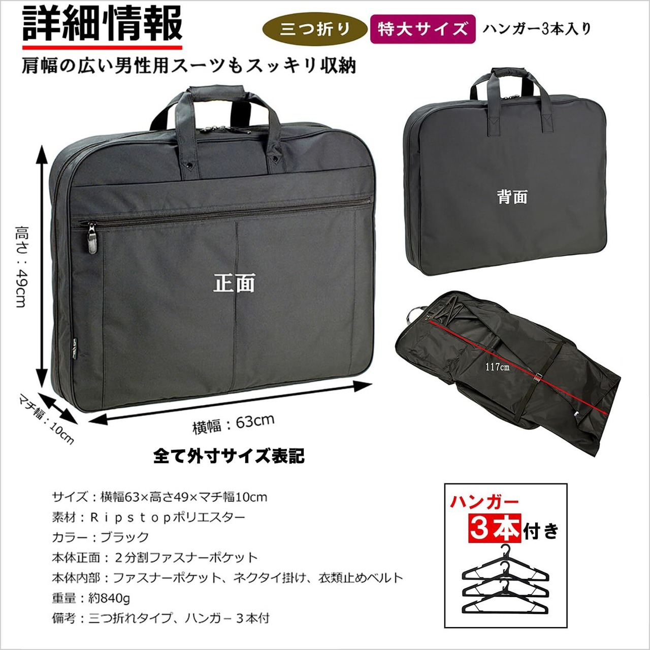 【2025最新】ガーメントバッグ ロング丈対応 ハンガー3本付 3着対応 出張 旅行 冠婚葬祭 840g + 竹八謹製 ケーブルバンド2個セット tm0743