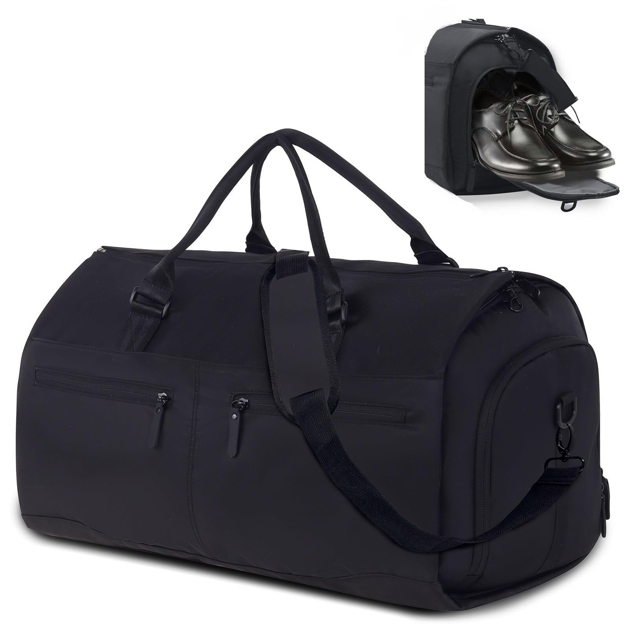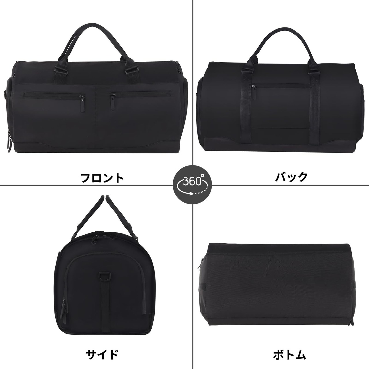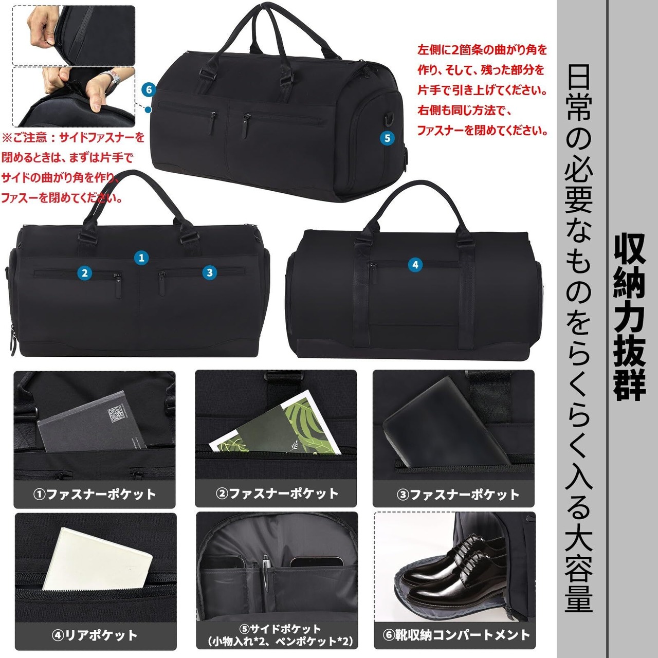 ボストン式 ガーメントバッグ スーツバッグ メンズ 大容量 3way 手提げ 斜め掛け キャリーオン機能 3泊4泊 シューズ 靴収納 撥水加工 ビジネス 出張 出勤 冠婚葬祭 ショルダーベルト付き 20ポケット 45L (ブラック)