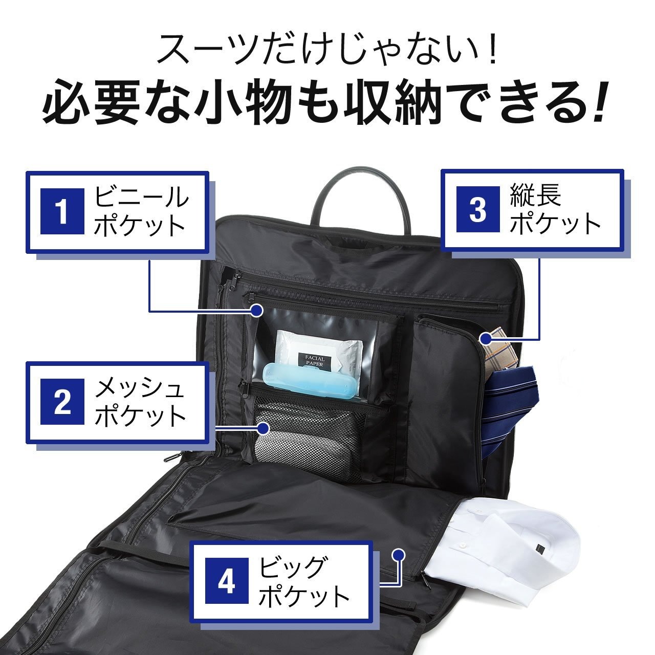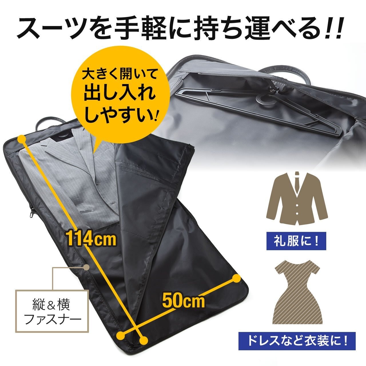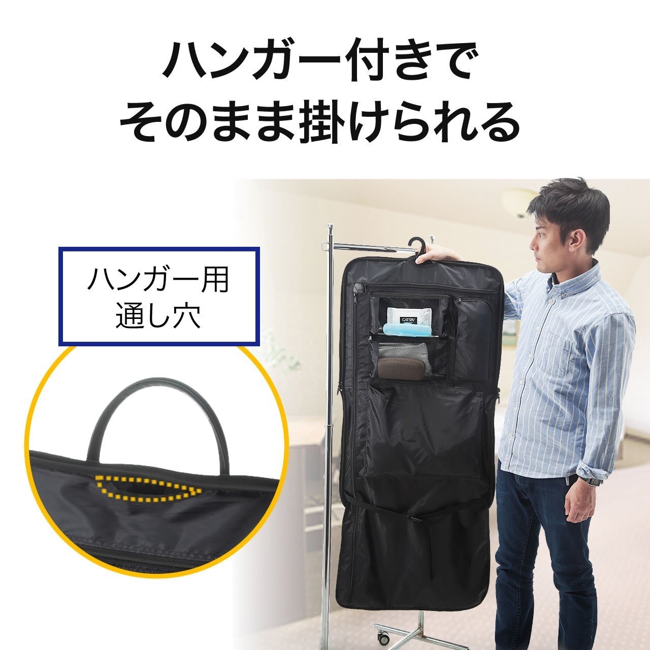 【2025最新】サンワダイレクト ガーメントバッグ ハンガー付 【小物ポケット付】 縦&横開きファスナー 大きく開いて便利 スーツ/シャツ収納 メンズ 200-BAG108