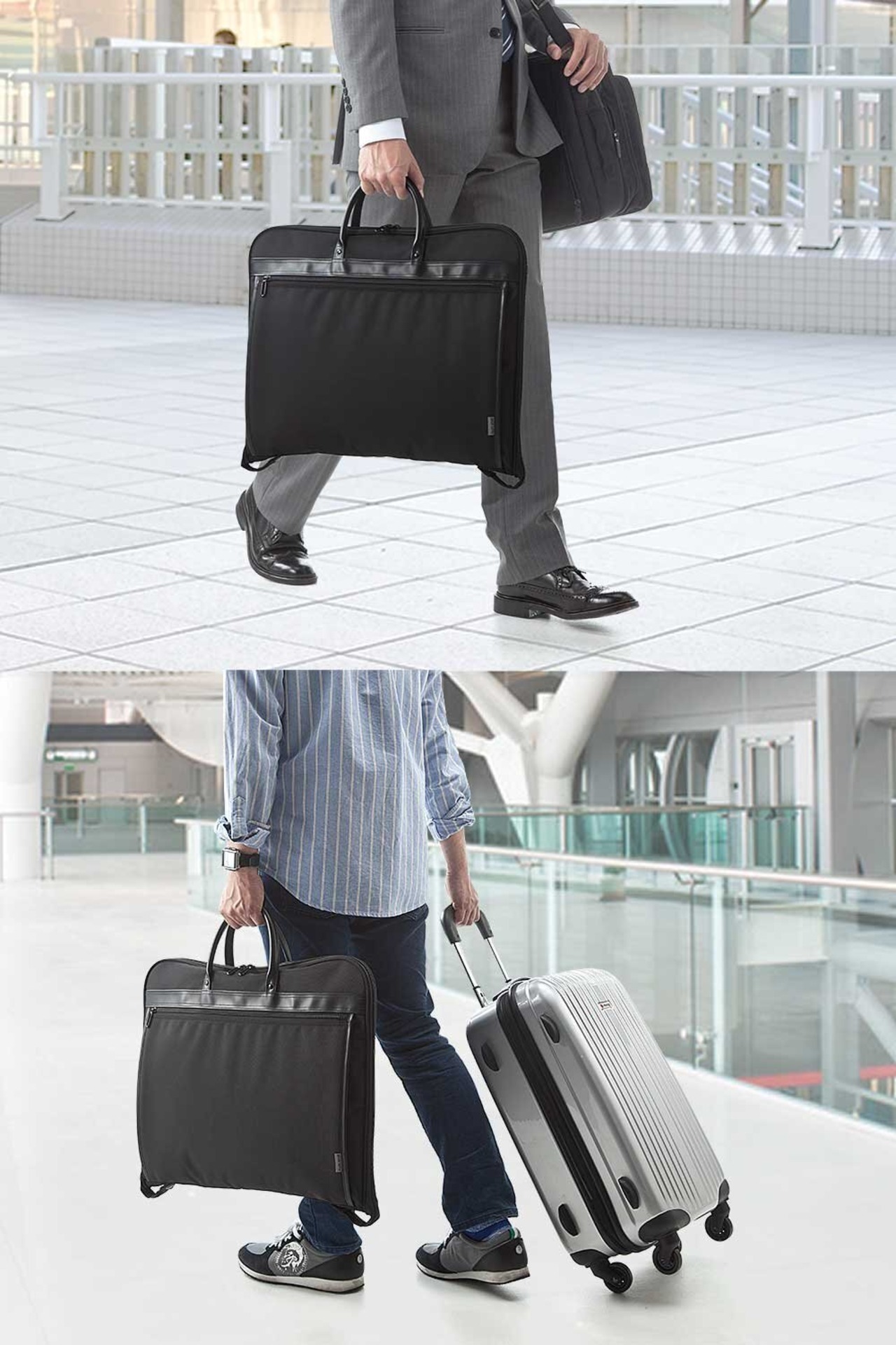 出張や外出、帰省時などに便利なスーツを持ち運びでき、シャツや小物など一式がスリムに収納できるガーメントバッグです。
