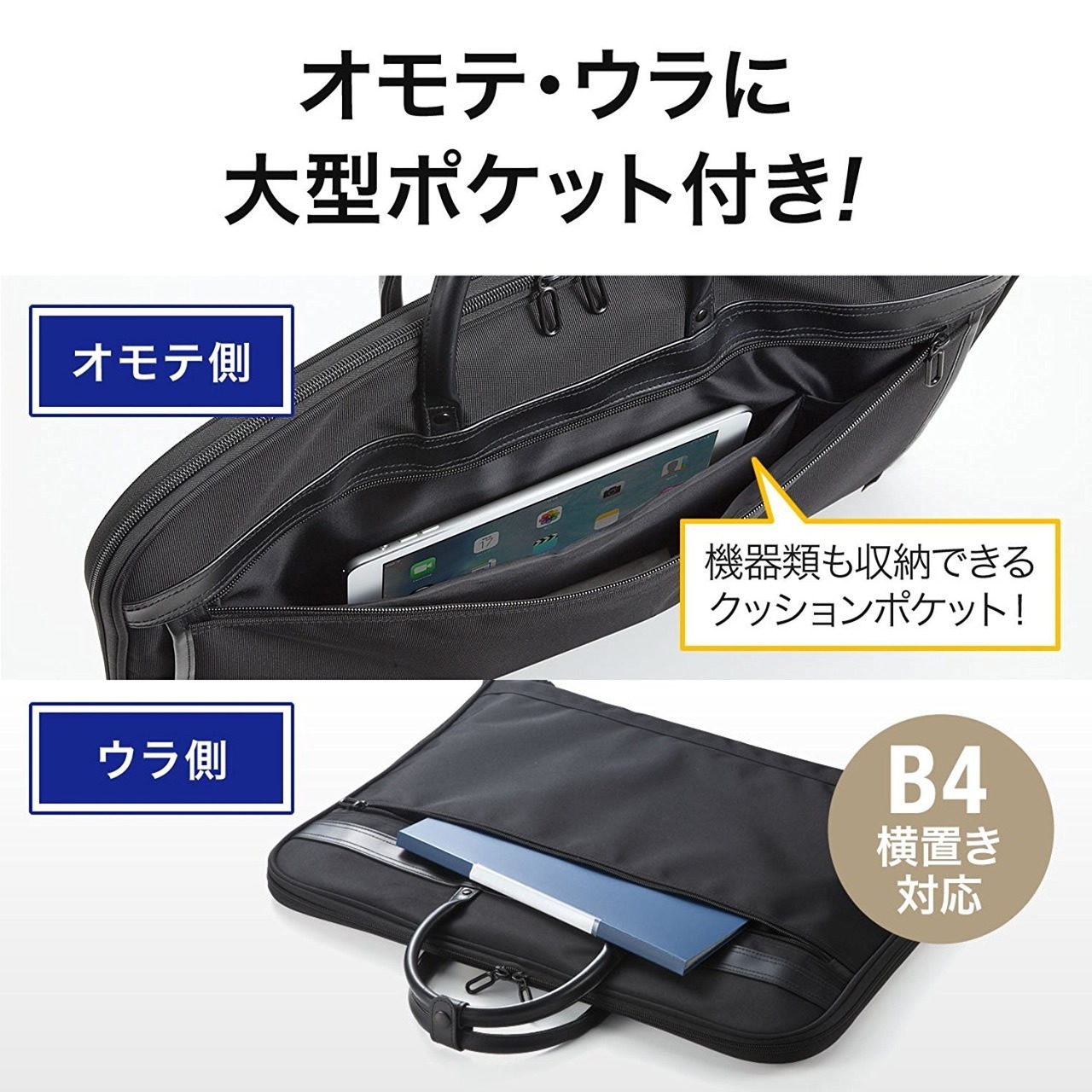 背面にはB4の横向き対応の大きめポケットも搭載しています。