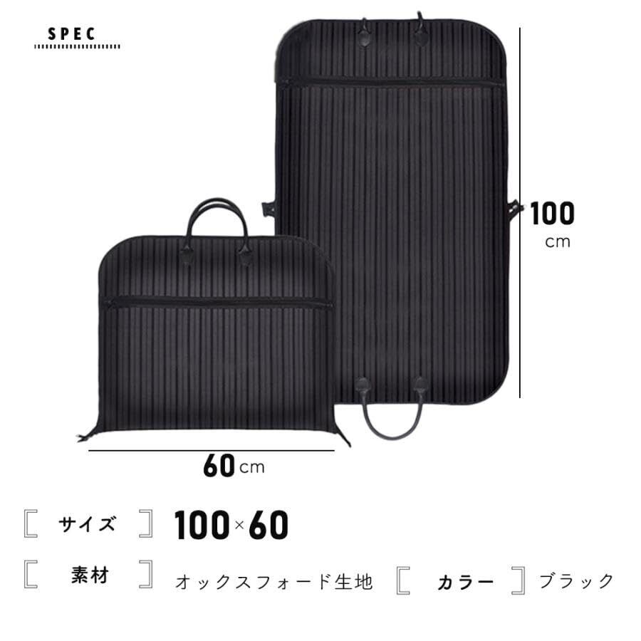 ガーメントバッグ スーツカバー 持ち運び ガーメントケース スーツバッグ テーラーバッグ スーツ入れ メンズ レディース ドレス 旅行 ■シワがつきにくい ■多収納設計 ■フロントポケットはシャツや小物をまとめて収納 ■Dカン付きなのでハンガーのまま楽に収納できます ■持ち運びが楽々 ■生地は撥水&防塵&防カビ仕様 ■サイズ 100×60cm ■素材 オックスフォード生地 ■カラー ブラック