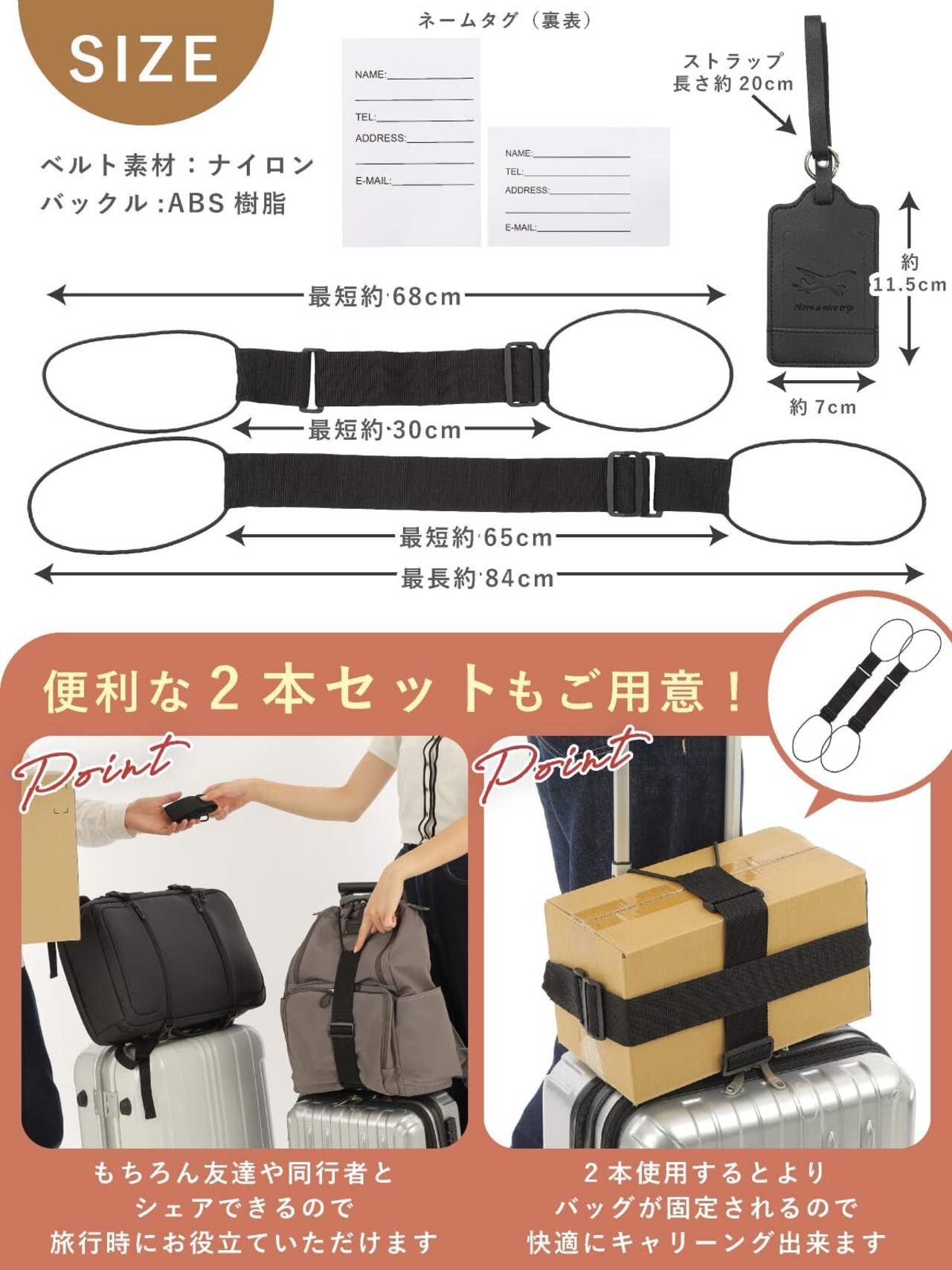 【現役CA推薦】スーツケースベルトの使い勝手の良さは勿論ですが、旅行には必須アイテム、付属のネームタグもCAさんから隠れた人気を誇ります!最大の特徴は、『個人情報を隠せる安心感』&『着脱がとても簡単』。プラーベート旅行、お仕事にとても喜んで頂いています。