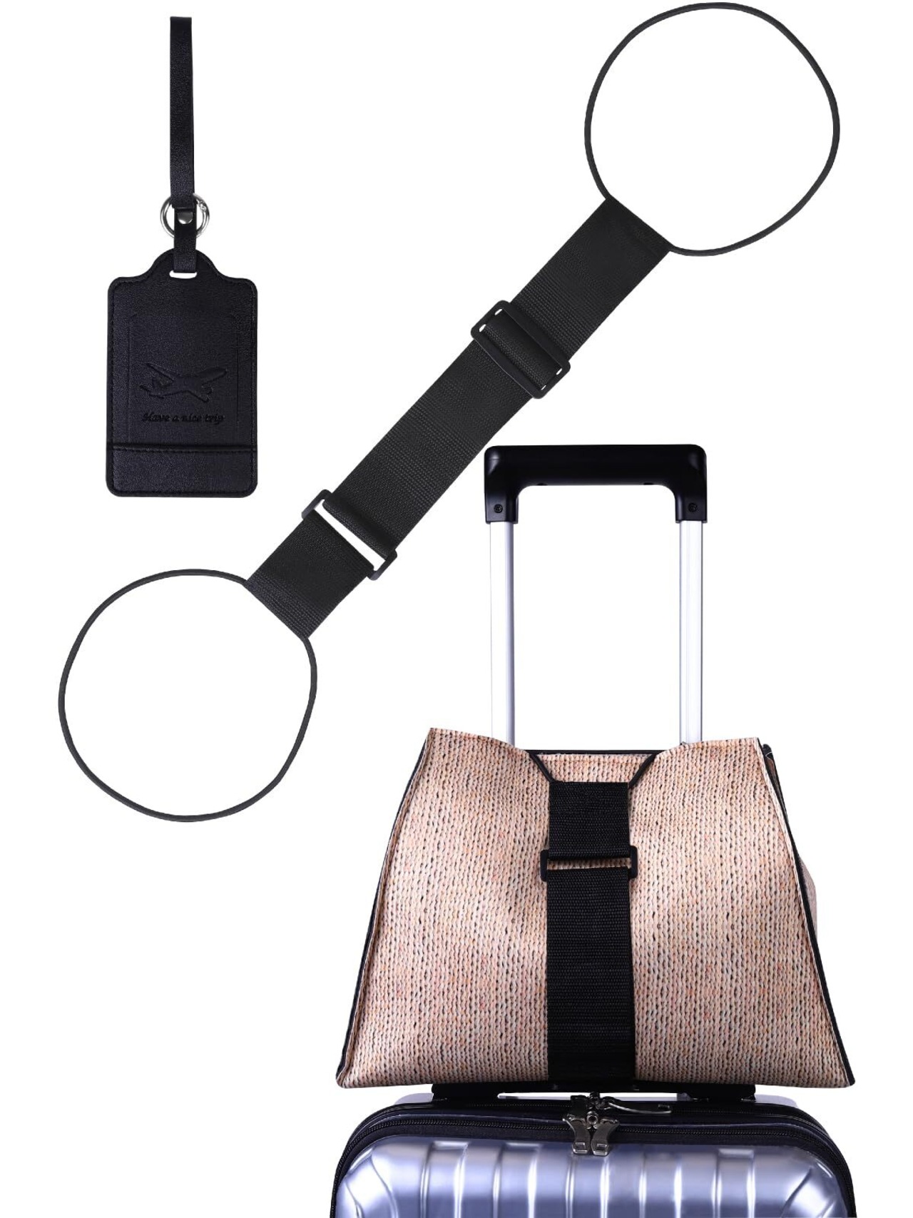 【現役CA推薦】 T.A.L.D.B スーツケースベルト 荷物固定ベルト 海外旅行 便利グッズ 荷物タグ ネームタグ付き 調節可 バッグとめるベルト 軽量 (ベルト単品・ブラック)