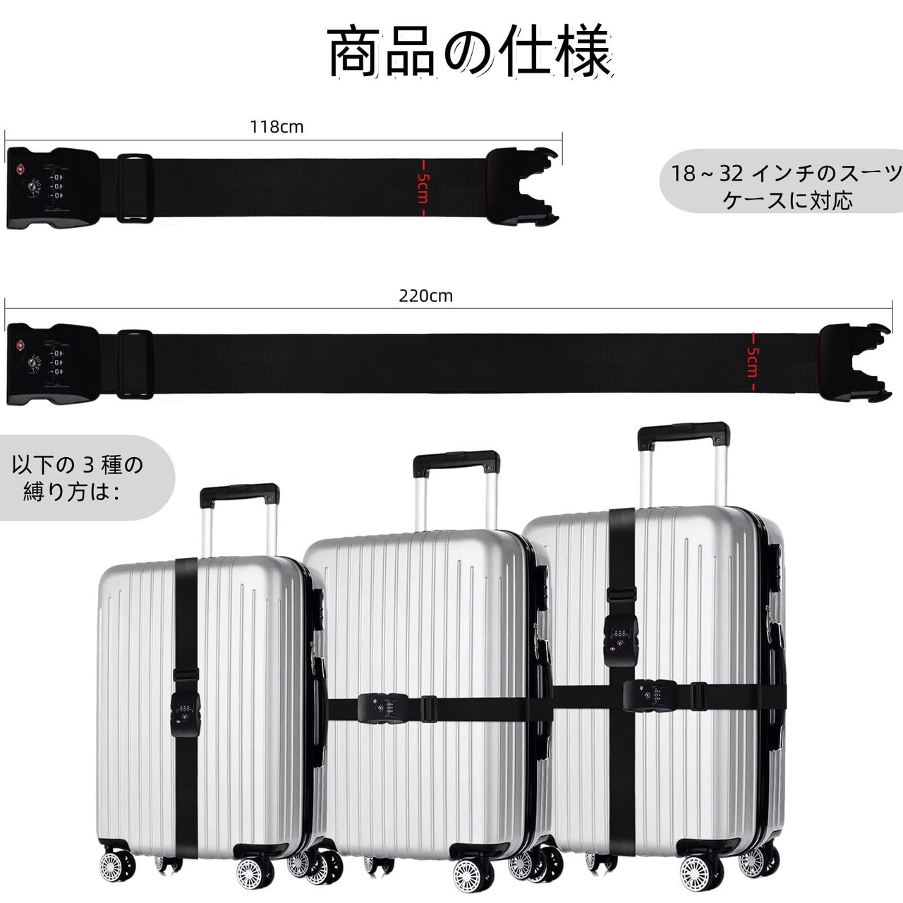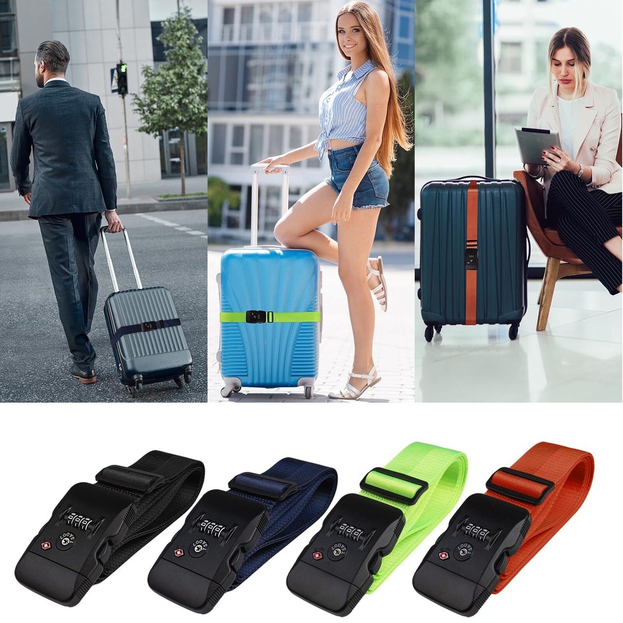 【3 桁ダイヤル式ロックで安全を守る】 このベルトは 3 桁の暗証番号を自由に設定でき、自分だけが簡単に解除できます。他人の無断開封を防止し、旅の安全を守ります。