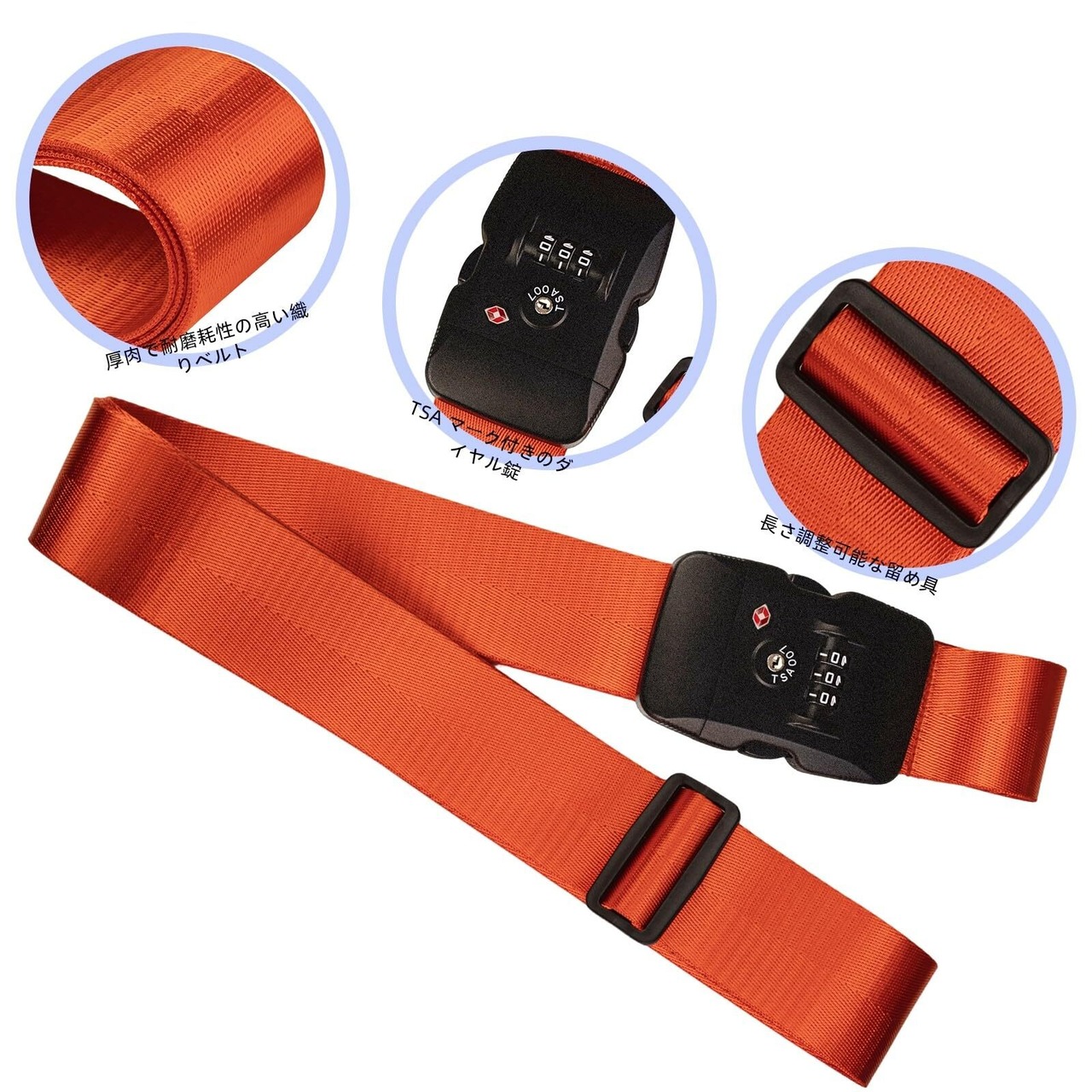 【特別価格】【高級品質・海外旅行 便利グッズ】tsaロック付きスーツケースベルト tsaロック スーツケース ベルト -空港での スーツケース 目印・防犯・バゲージ破裂防止、耐久性と使いやすさを兼ね備え・キャリーケース ベルト TSA ロック付き キャリーケースベルト/スーツケース バンド 鍵付き オレンジレッド