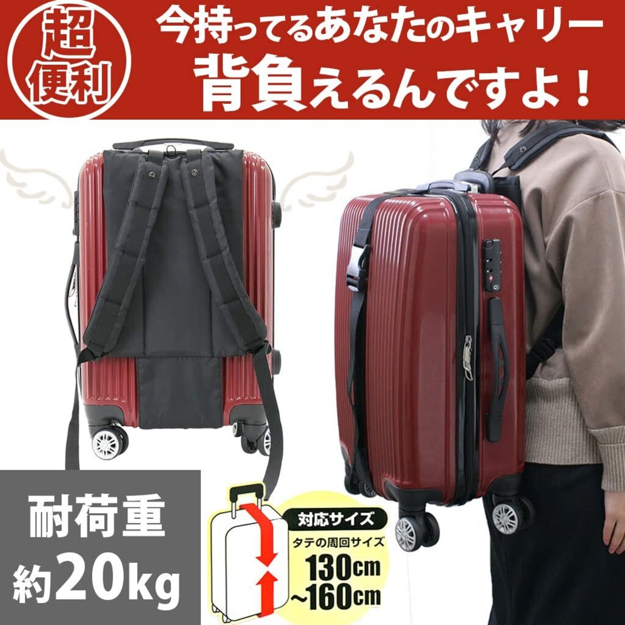 【新着商品】サンドグラス キャリーバッグ背負いベルト [旅行便利グッズ キャリーケース 背負える スーツケース 持ち運び用 ] 3G92