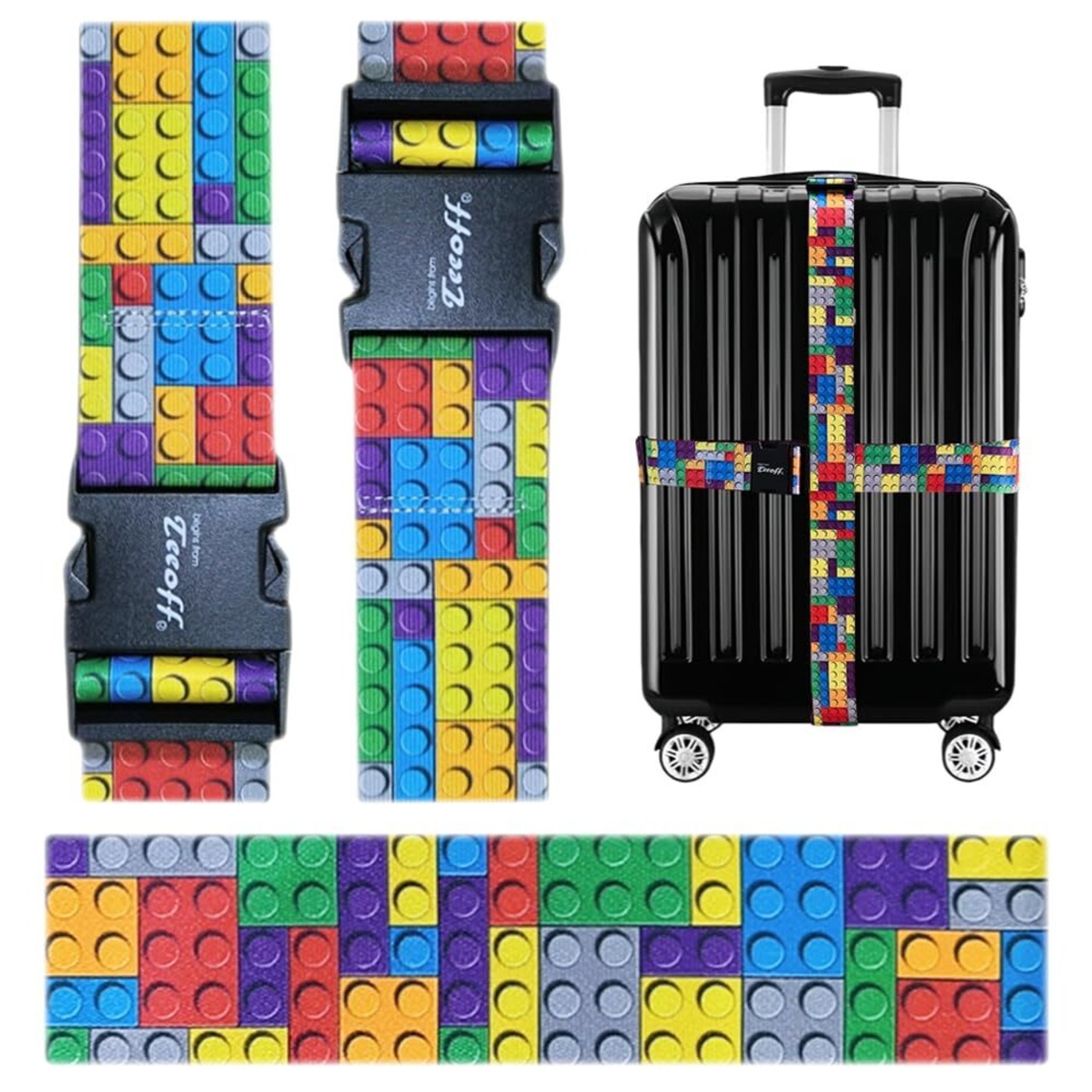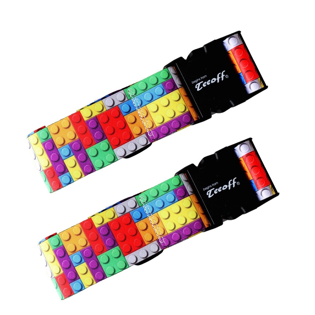 Teeoff 2 Pack Elastic Luggage Straps Suitcase Belts Travel Bag Accessories 2パック弾性荷物ストラップスーツケースベルトトラベルバッグアクセサリー調節可能220CM (Building Block)