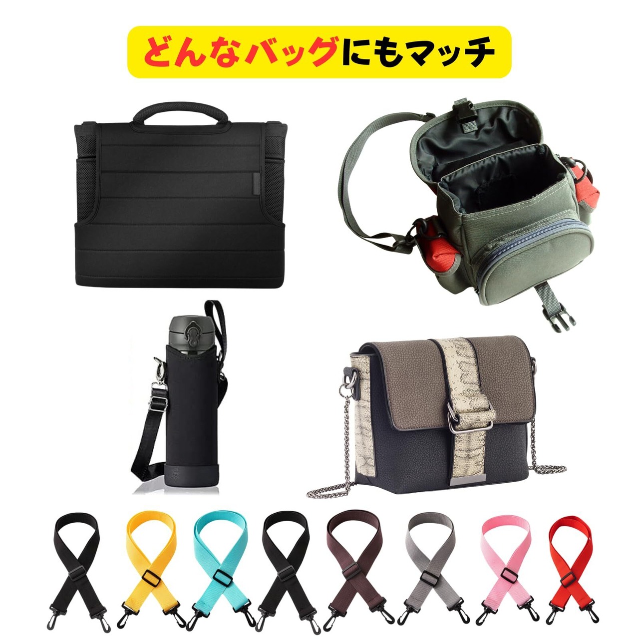 【どんなバッグにもマッチ】シンプルなショルダーベルトなのでバッグの形状を問いません。ビジネスバック、ポーチ、水筒、カメラバッグのストラップなどにもオススメです。