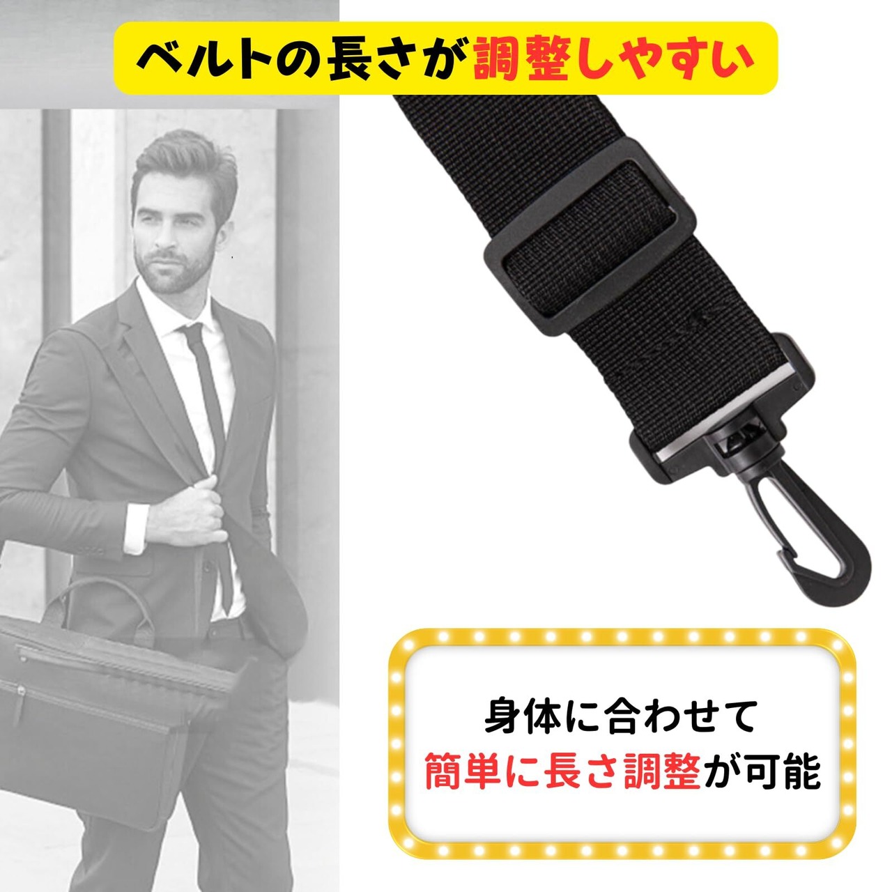 【ベルトの長さが調整しやすい】一般的なアジャスター形状で調整が簡単です。メンズ、レディース問わず使えるショルダー紐。身体に合わせて楽に長さ調整でき、肩や首の負担を軽減します。
