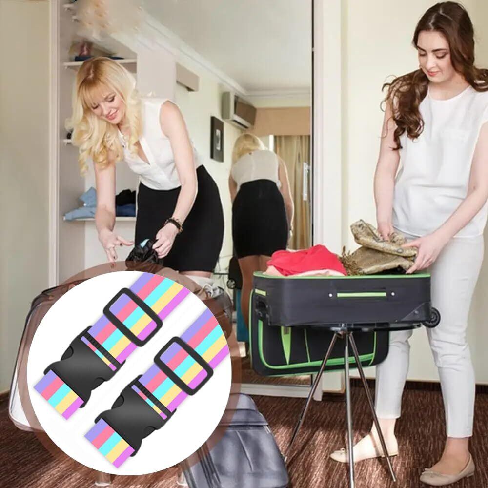 YAARUJEE スーツケースベルト 荷締めベルト 荷締バンド 多用途 固定 長さ1.8m 幅5cm 2本セット 虹色 旅行便利グッズ 調整可能 軽量 荷物用弾力固定 ずり落ち防止