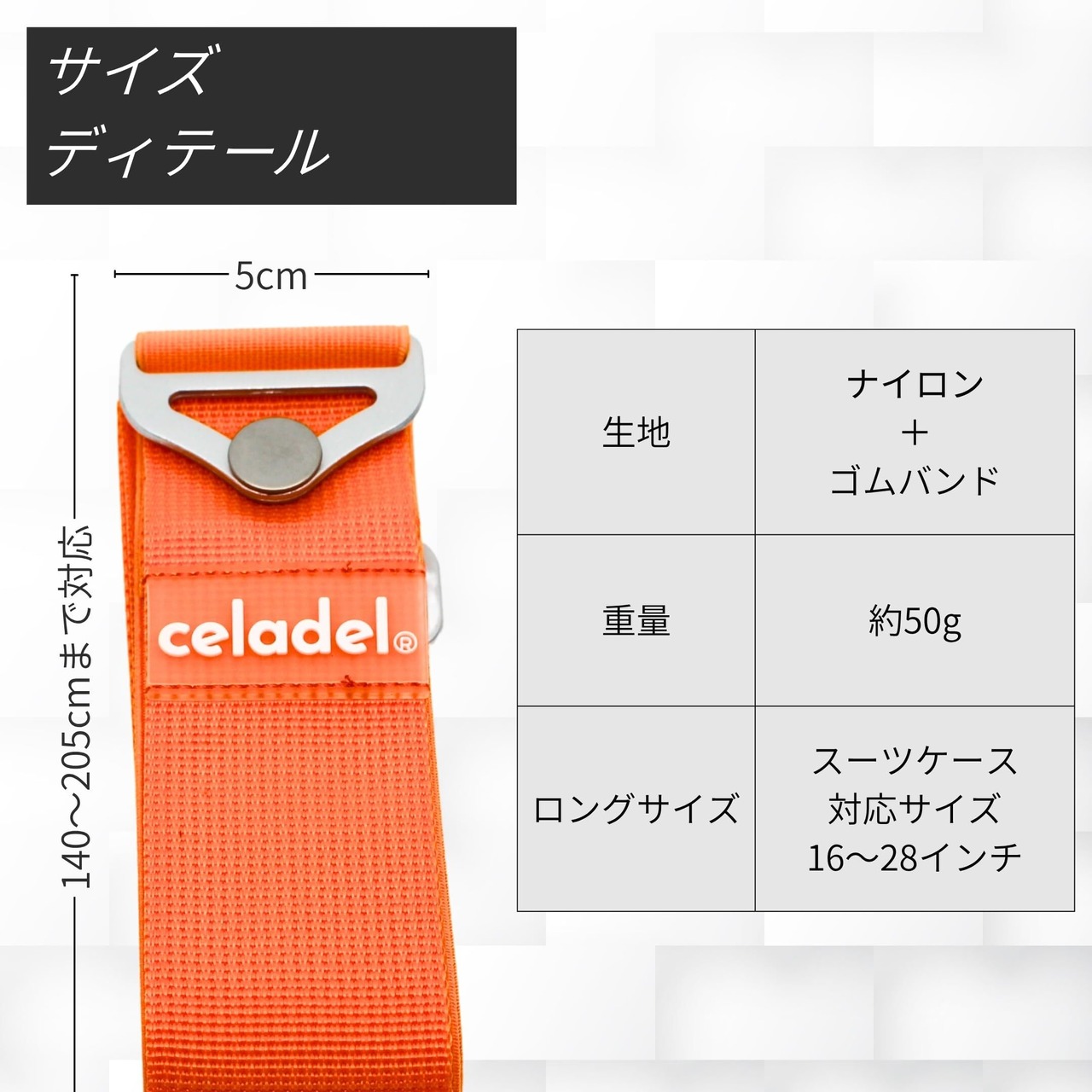 【在庫限り】celadel スーツケースベルト キャリーケースベルト スーツケースバンド キャリーケースバンド ストラップ バッグとめるベルト 海外旅行 出張 便利グッズ (オレンジ, ロング)