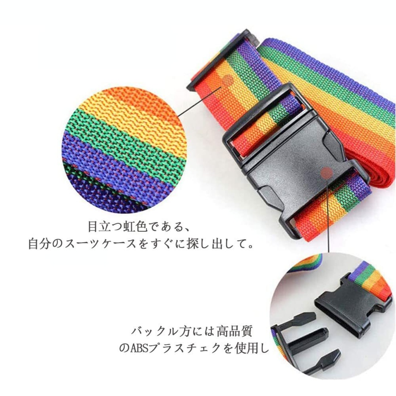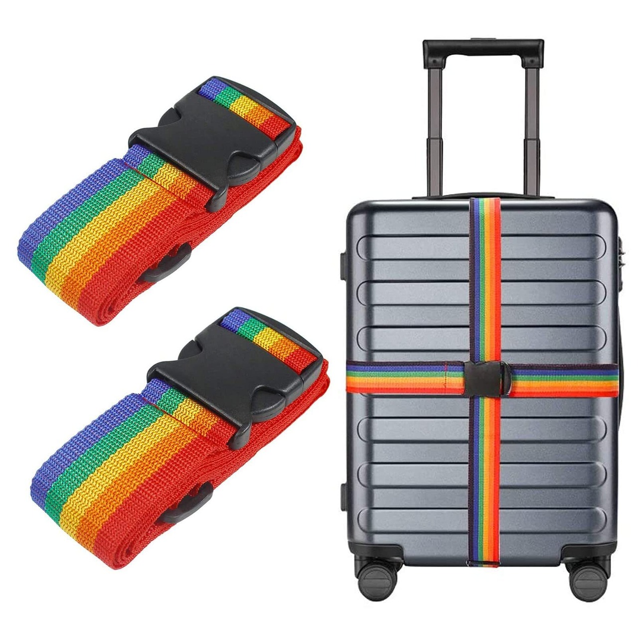 【在庫限り】DFsucces スーツケースベルト ワンタッチ式 荷物固定 調節可能 荷崩れ防止 紛失防止 高弾性スーツケース留めベルト 旅行便利グッズ (虹色)